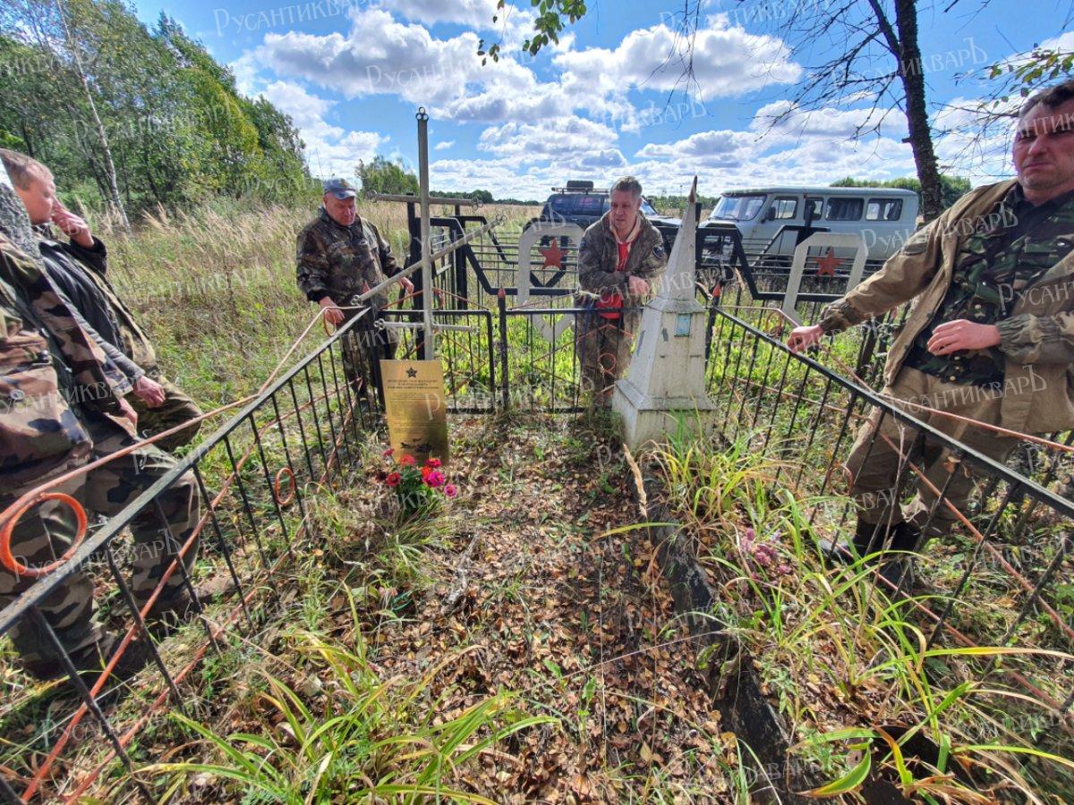 Наш товарищ – Александр Власов изготовил на работе памятную табличку, которую мы и установили на могиле во время осенней экспедиции.