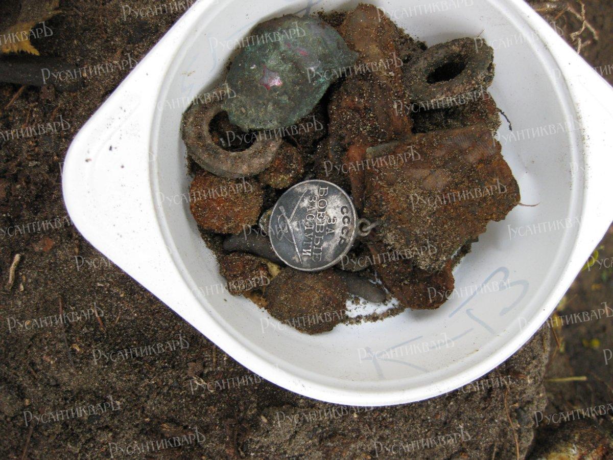 Останки стали попадаться практически сразу – желтые, крепкие и все вразнобой. Угадывалась работа мародеров. Копали они, скорее всего, ночью, мы нашли даже батарейки от их фонаря, а также смятую сигаретную пачку и окурки. Желающие обобрать мертвецов, к сожалению, находятся всегда и везде. У нас раскапывают немецкие кладбища, а здесь роют советские, тем более, если у мертвых есть чем поживиться. Здесь сражались уже не те отступающие от границы, ошеломленные вражеским натиском не верившие в свою победу солдаты. И даже не те, кто обреченно поднимался в атаку в сорок втором…Много ли вы находили наград у этих солдат? Здесь шла неостановимая лавина, полностью поглощающая ненавистного врага и стремящаяся к его проклятому логову. Со второй половины 1943 года советские военачальники перестали скупиться на награды простым солдатам, поэтому и нашли мы их на 120 воинов аж 11 штук – «За отвагу», «За боевые заслуги», «За оборону Сталинграда» - больше чем у себя смертных медальонов находим на такое количество погибших. Сколько еще наград пропало по вине мародеров!?