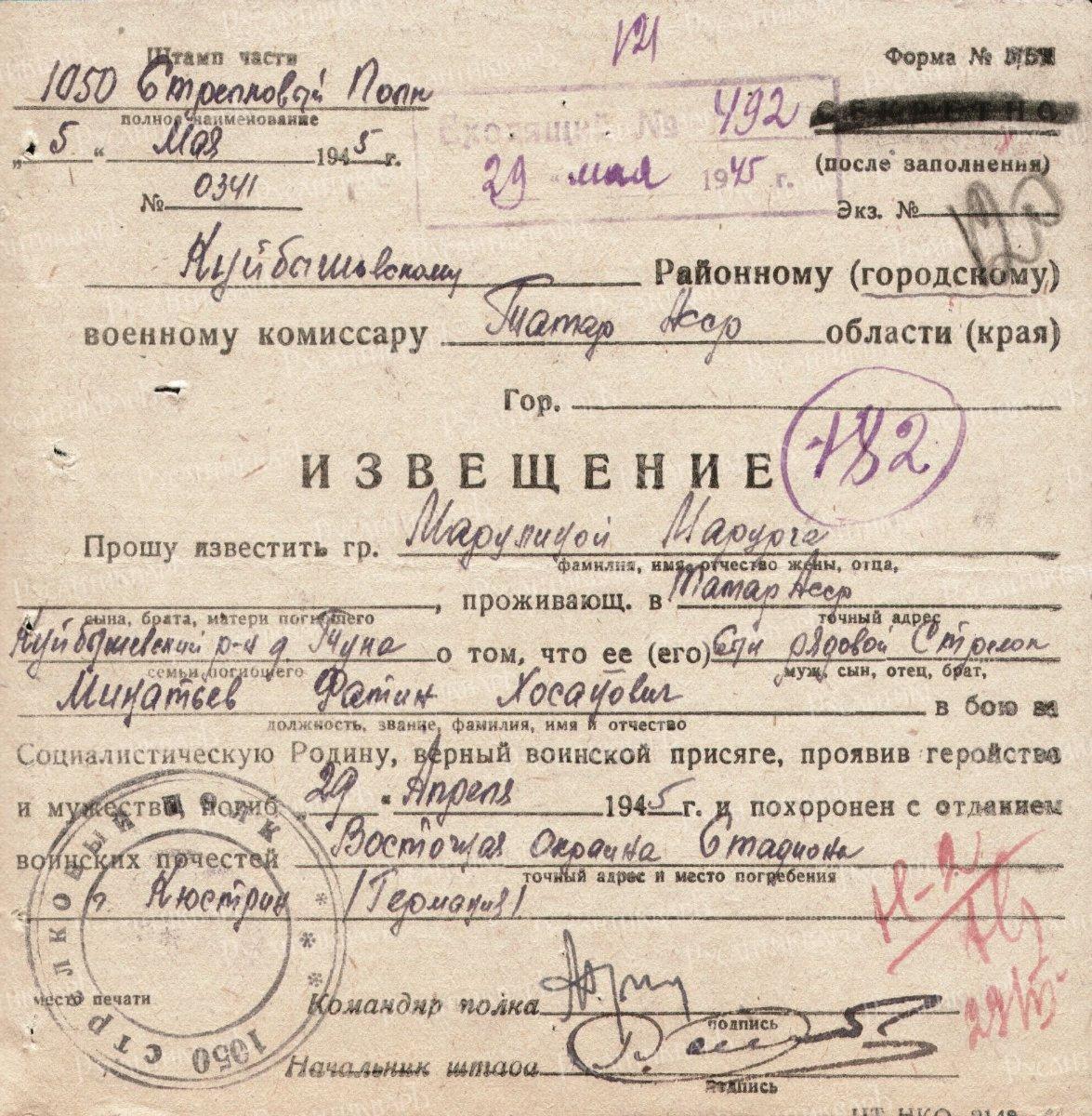 Таким образом, потомки солдат, проживающие в Московской и Новосибирской области, Республике Удмуртия и Республике Каракалпакстан (Узбекистан) уже в этом году получат на вечное хранение в семьи эти боевые реликвии.