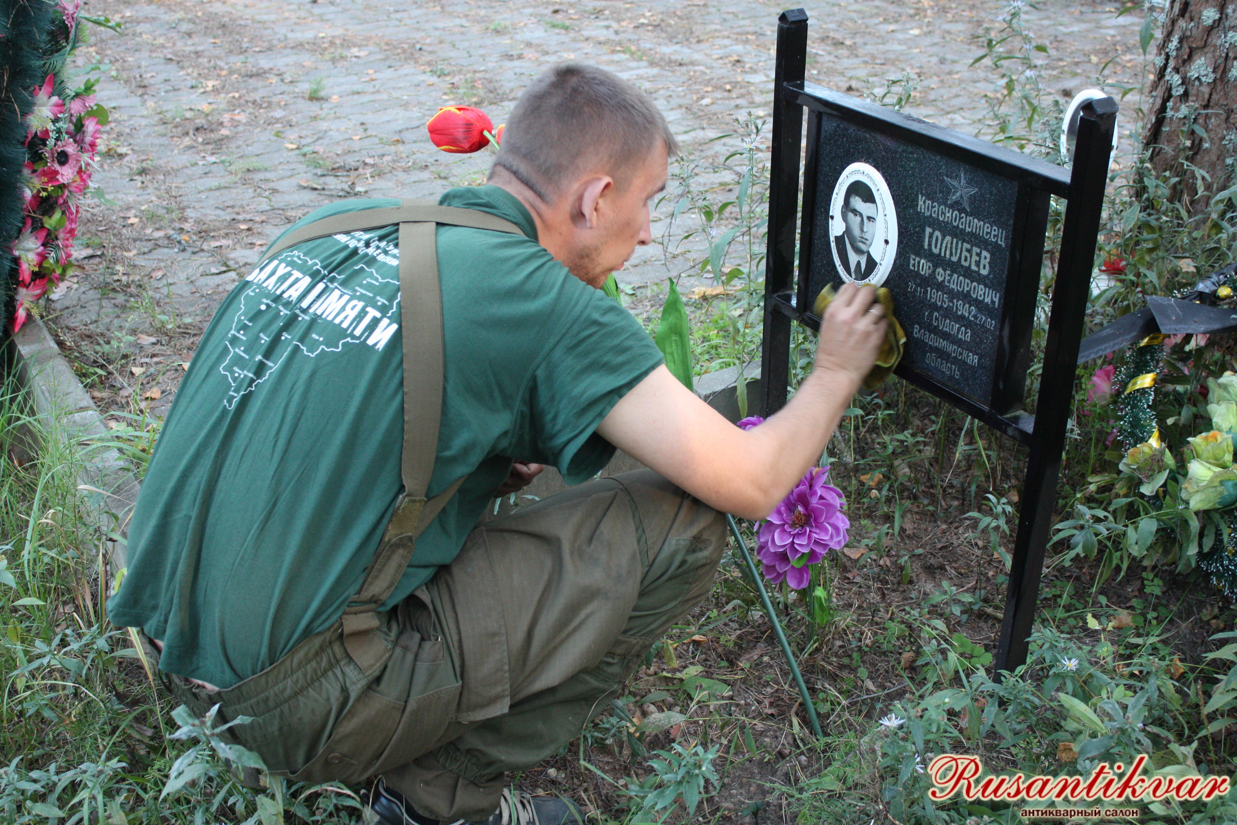 У нашего командира Славы Казакова в боях за совхоз «Миловиды», где мы стояли лагерем, в феврале 1942 года был тяжело ранен прадед - Егор Голубев. Через несколько дней он умер в госпитале в деревне Рудня под Велижем. Там же в лесу был похоронен в госпитальном захоронении, о чем его родню в Судогде и известили. В начале 1990-х по воле местных властей была проведена эксгумация. Согласно документам, всех солдат из захоронения подняли и перезахоронили в соседнем селе Селезни, где появилась братская могила. Слава отыскал её и несколько раз навещал прадеда, даже установил рядом отдельную табличку с портретом Голубева. Заехали мы к его прадеду и в эту «вахту». Положили цветы, прибрались. А на следующий день наша разведка донесла, что в Рудне, возле той госпитальной ямы, из которой в 1990-х подняли солдат, найдены ещё останки. Тут же выехали туда. В сосновом лесу на небольшой площади еле заметные углубления. Щупы проваливаются, упираются во что-то похожее на кости. Начинаем копать. У одного поисковика – останки, у другого - останки, у третьего, у четвертого, у пятого. У шестого – останки с медальоном. У седьмого – какие-то отдельные фрагменты костей. У восьмого - скелет и остатки гроба, видимо, офицер.