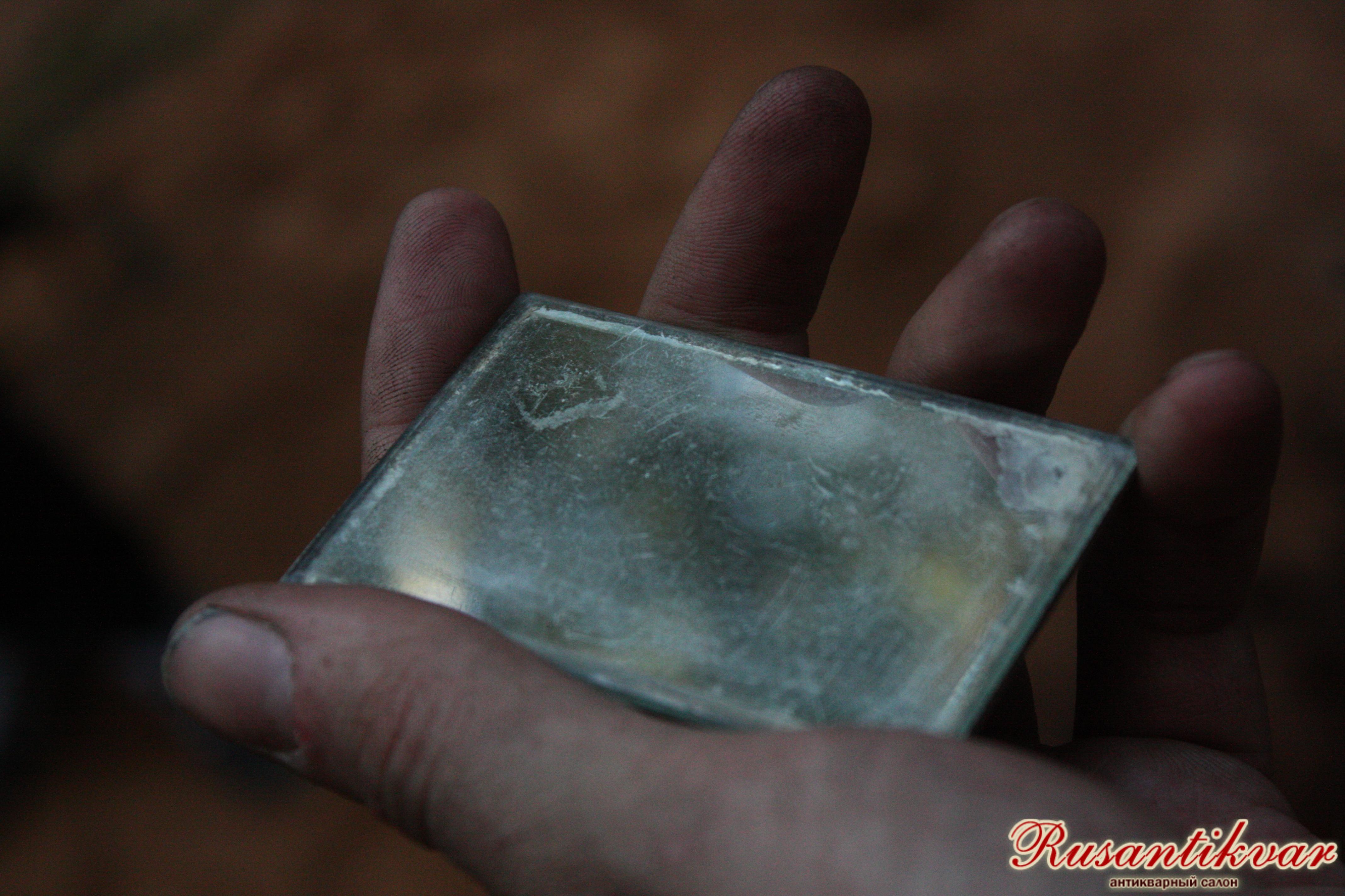В одном из захоронений рядом с костями нашли маленькую табакерку, в другом - точильный камень, в третьем - зеркальце. Оно пролежало вместе с хозяином в земле больше 70 лет. Поверхность зеркальца помутнела, но всё равно отражала сосны, небо и солнце. Кто-то из старших поисковиков поспешил предупредить нас – не смотреть в зеркало – плохая примета. Не одобрили бывалые поисковики и моего желания сфотографировать зеркальце. Я, конечно, не послушал и сделал несколько кадров.