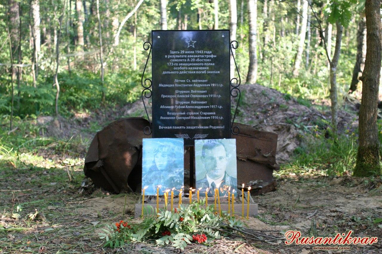 «Здесь 29 июля 1943 года в результате авиакатастрофы самолета А-20 «Бостон» 173-го авиационного полка особого назначения дальнего действия погиб экипаж