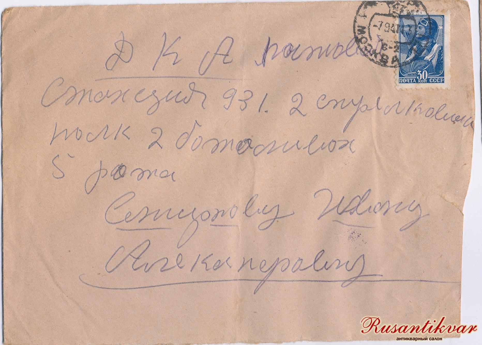 Адрес отправителя: Действующая РККА, Полевая-почтовая станция №931, 2-й стр. полк, санвзвод-музвзвод. Талыкину В. М.