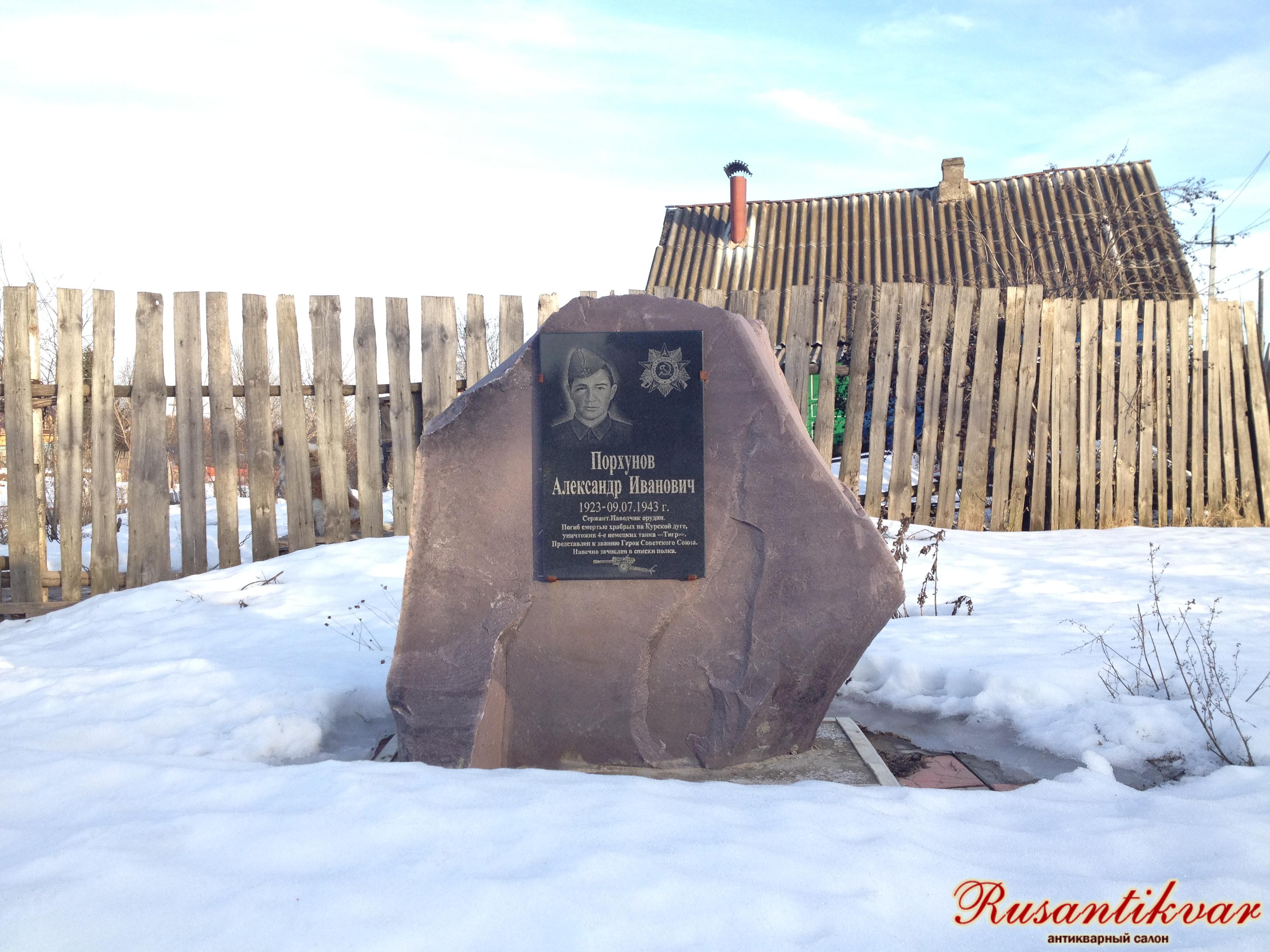 Памятник сержанту А.И. Порхунову в поселке Пыра.