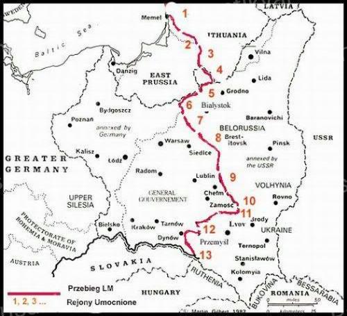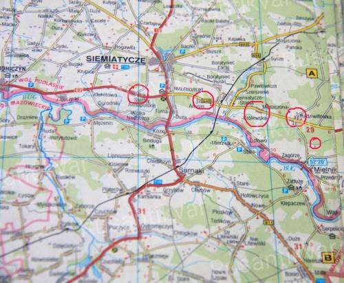 1.«Линия Молотова» под Семятичами. Красными кружками отмечены ДОТы 17-го пульбата.