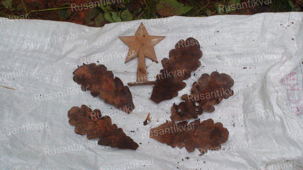Зато на следующий день нам «повезло». На краю глубокого оврага, удалось зацепить металлоискателем силуминовую звезду, которая когда-то венчала воинский обелиск. Дальше – больше - остатки венков, водочная бутылка с годом выпуска на донце – 1975 год, стеклянная банка и…человеческие останки.