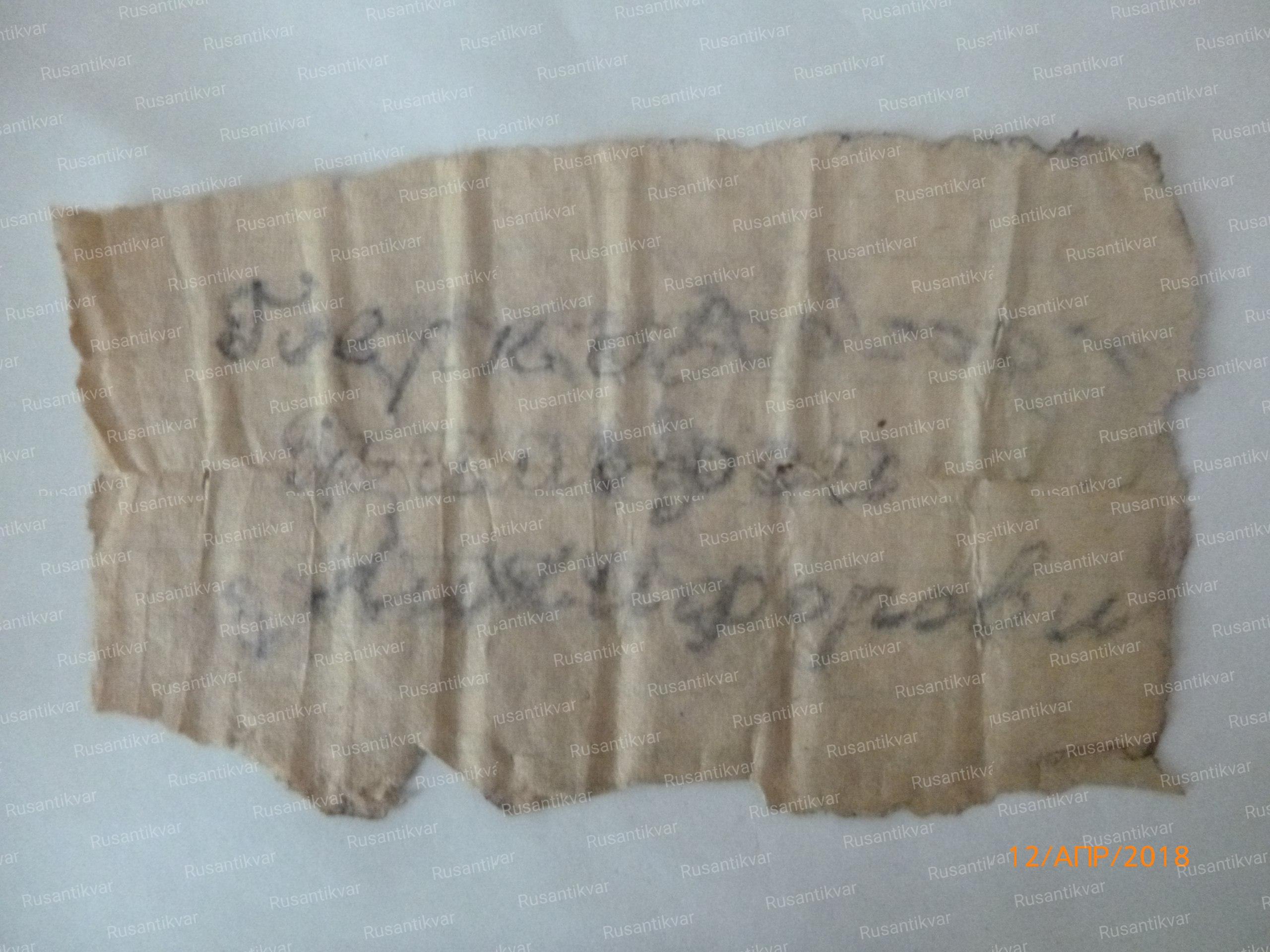 История боя артиллеристов получила продолжение в 2017 году. Тогда был найден ещё один участник событий декабря 1942 года. «Вахта» уже заканчивалась, это был последний рабочий день. В лес пошли, только чтобы проверить несколько точек и поставить метки на GPS. Но один из поисковиков отошел чуть в сторону от основного места работ. И вот у кромки болота металлоискатель дал сигнал. Несколько взмахов лопатой, и вот он, источник сигнала - металлический бокал. Чуть глубже пошли останки. А рядом с останками бойца – бутылка с запиской. Благодаря тому, что бутылка была плотно заткнута, записка отлично сохранилась. Это оказался титульный лист книги французского философа Дени Дидро «Монахиня» издания 1938 года, а на другой стороне листа была надпись «Гирой алтирист наш комисар летинант Умеров». Герой артиллерист – старший лейтенант Бекир Умеров 1918 г.р., секретарь комсомольской ячейки уже знакомого нам 1224 ГАП РГК, уроженец г. Бахчисарай Республики Крым. Он так же, как и сержант Панин, погиб в бою с немецкими танками в декабре 1942 года. Примечательно то, что институт комиссаров в РККА был отменен в начале октября 1942 года. Каким же уважением пользовался этот молодой командир, что бойцы по-прежнему называли его комиссаром! И даже то, что нашли его немного в стороне и с этой запиской, указывает на то, что бойцы хотели запомнить место и похоронить его с почестями.