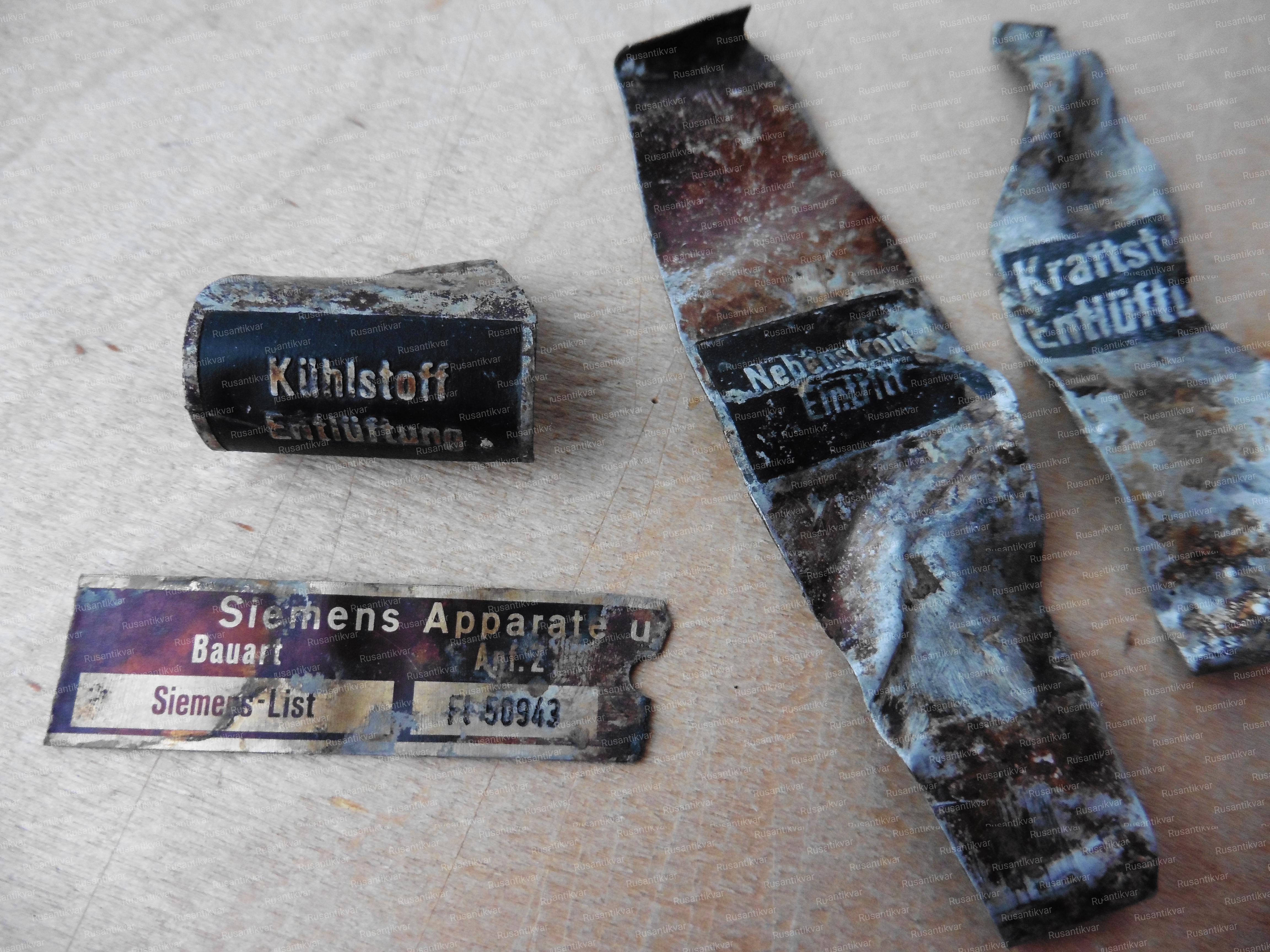 Начались работы по освобождению мотора от грунта, в который он ушел на 3.2 метра вертикально. На поверхность извлекли обломки моторной рамы и радиатор. На последнем имеется шильда с указанием типа самолёта – Heinkel-111 H-6. Среди прочих обломков обнаружились ещё несколько заводских табличек с номером самолёта, одна из которых имела другой номер – 4806, а дату – ноябрь 1941 года.