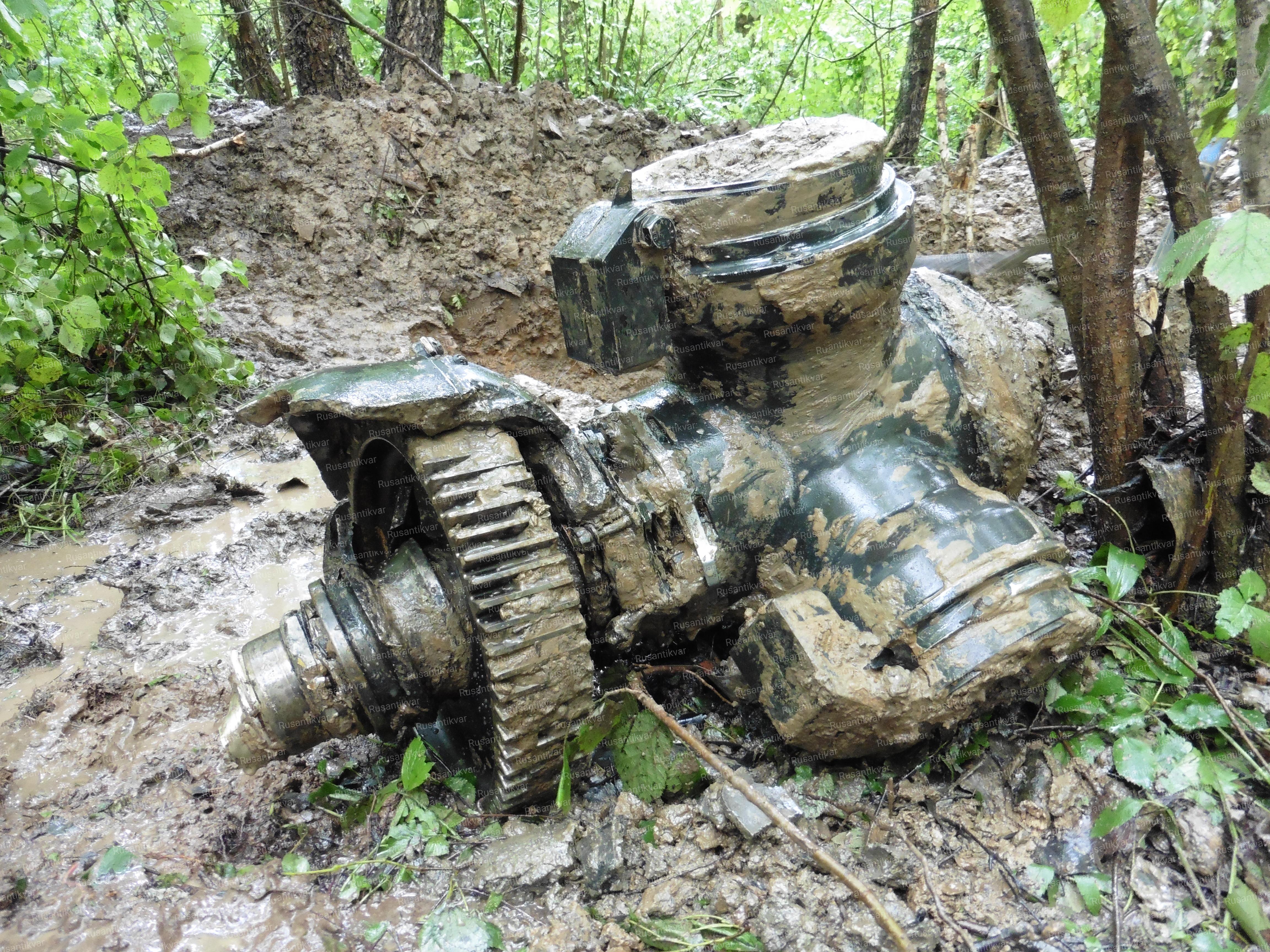 Постепенно мотор был обкопан со всех сторон и подготовлен к подъёму на поверхность. Он оказался практически целым – разрушенной была только крышка и большая шестерня редуктора. Следует сказать, что металл, дерево, резина и краска сохранились в отличном состоянии благодаря отсутствию доступа воздуха, остаткам масла и бензина в грунте вокруг мотора. Характерный запах топлива ощущался в раскопе во время работ. Некоторые детали были изготовлены из сплава, который быстро разлагается при высокой влажности - к примеру, на моторе полностью разложились клапанные крышки, при этом шпильки и гайки, которыми они крепились, совсем не имели ржавчины. Левый мотор – ЮМО-211 № F1/1061, изготовлен в Лейпциге на предприятии «MMW» , о чем свидетельствует заводская шильда и фирменная эмблема.
