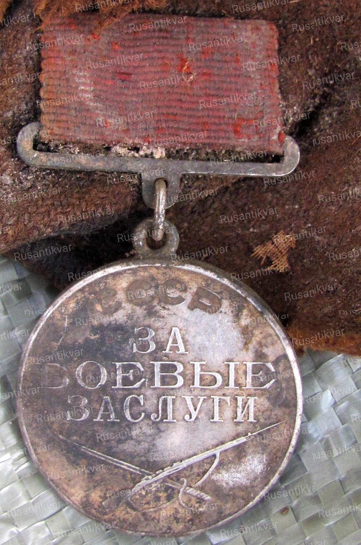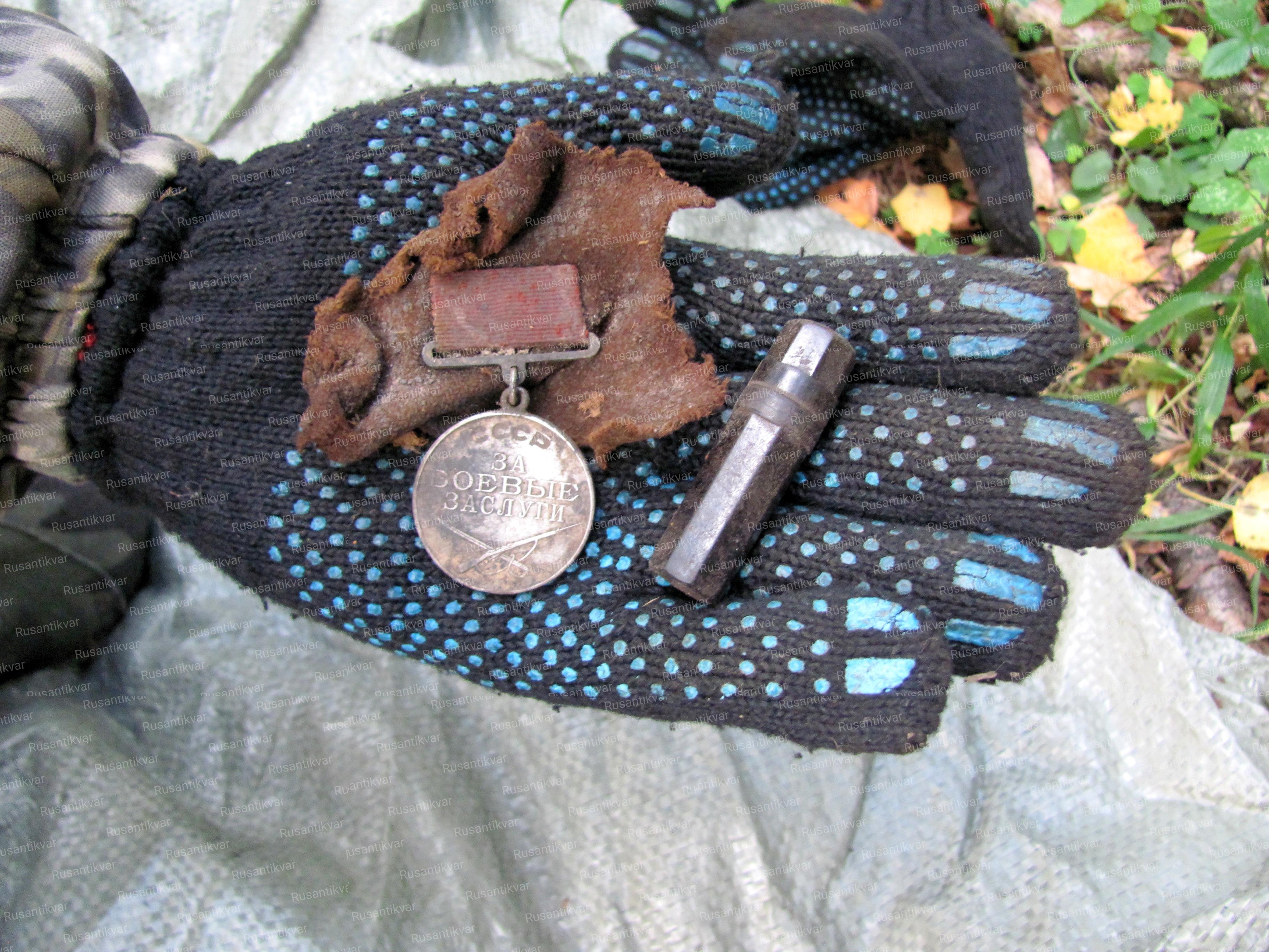 Останки солдата сохранились не полностью - отсутствовали некоторые кости скелета. Он был без головного убора и обуви. Мы обнаружили фрагменты шинели, на одном из которых нашли медаль «За боевые заслуги» №35568. Также при погибшем был обнаружен плохо сохранившийся планшет с ластиком, карандашом и перьевой ручкой, медальон с бумажным вкладышем, алюминиевая ложка, перочинный ножик и кожаный поясной ремень.