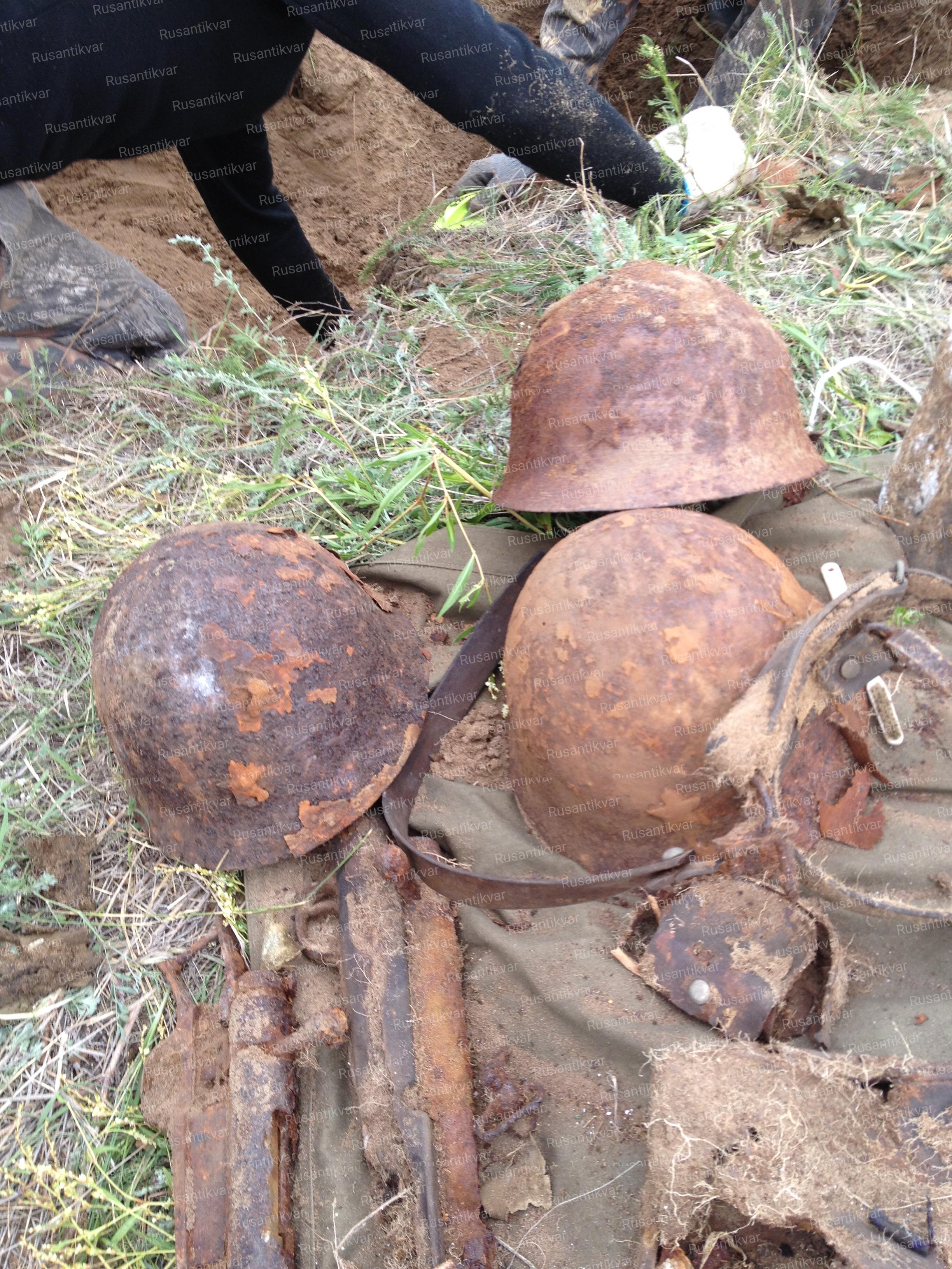 В некоем подобии блиндажа обнаружили по сигналу от каски двух советских солдат. Как оказалось – это был пункт боепитания. Ящик гранат РГД-33, гранаты для мортирки Дьяконова, много Ф-1 и 14 цинков с патронами. Патроны все в бумаге и чернильных штампах. Заряжай и стреляй!