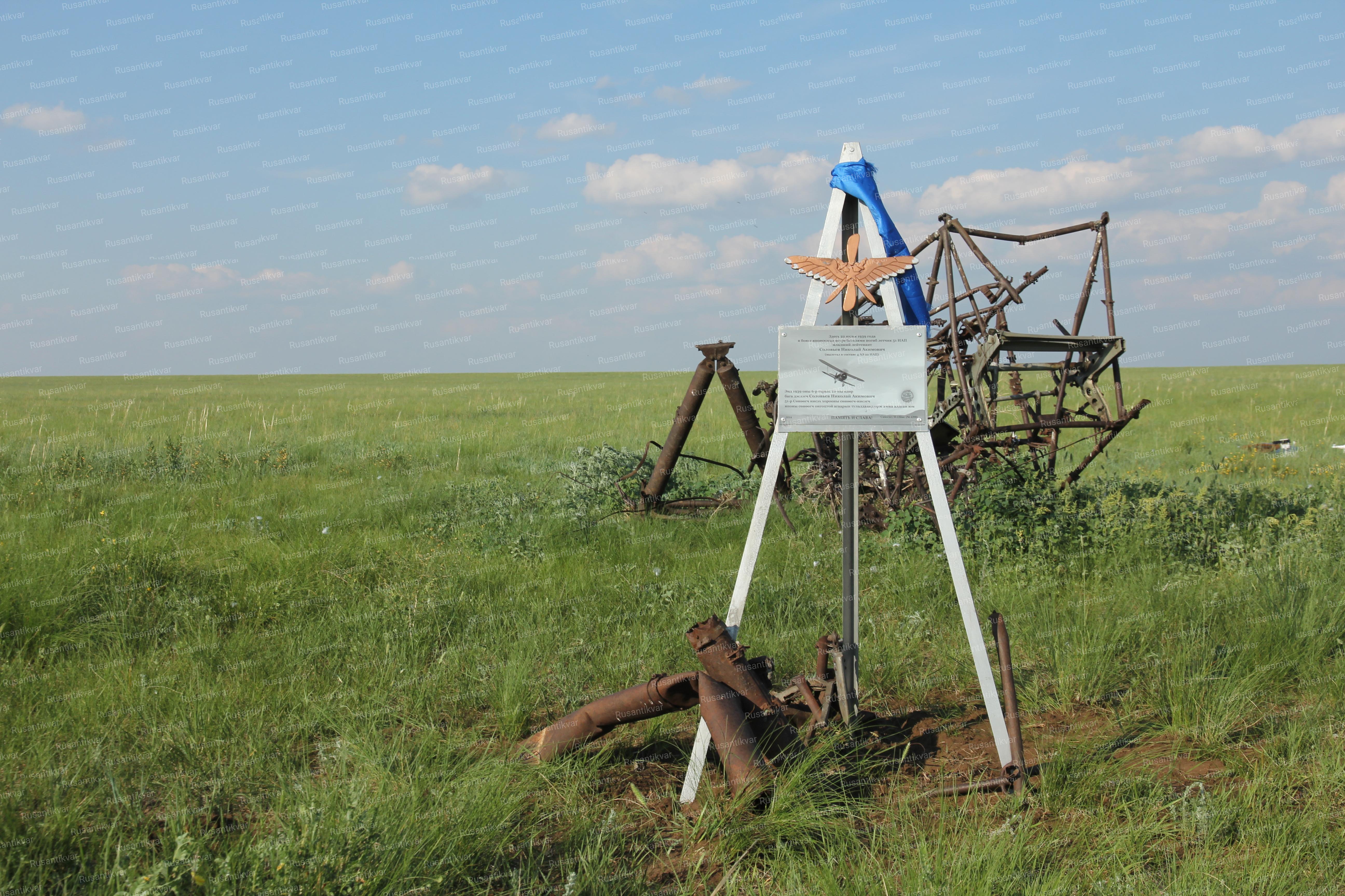 Установка памятного знака на месте гибели младшего лейтенанта Соловьёва. Лётчик 51-го ИАП Николай Акимович Соловьёв погиб 22 июня 1939 года в бою с японскими истребителями на машине И-15бис.