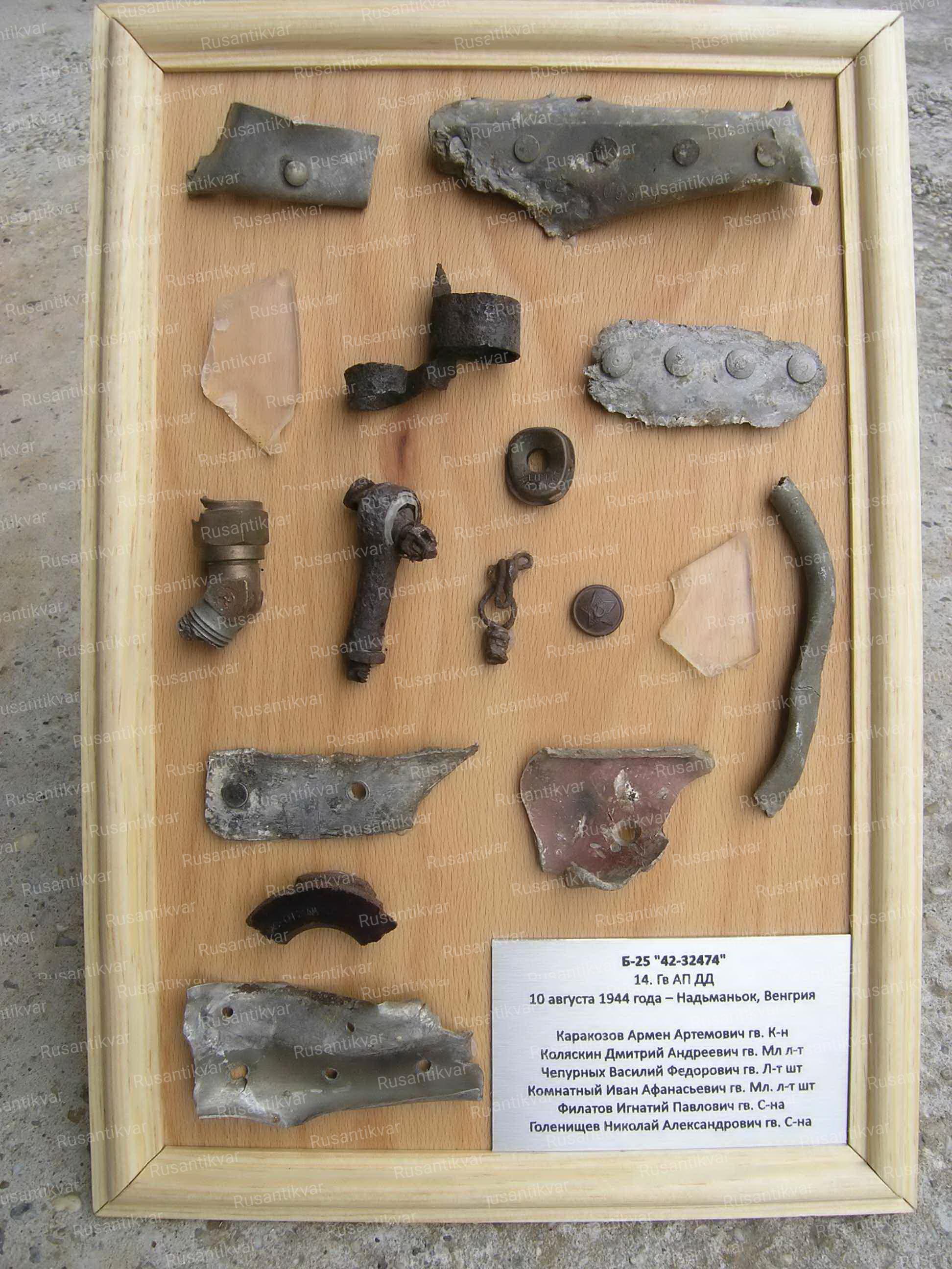 Габор Надь со своим другом Тамашем Дернером ещё полтора года ездили на место падения, собирали и потом отмывали тысячи мелких осколков. Среди находок - пуговица с гимнастерки, деталь от парашюта. Но находок с серийными номерами не было, не с чем сравнивать установленные полные номера самолётов и двигателей. Оставалось работать с венгерскими, немецкими архивами и с местным населением. Надежда была, например, что найдется рапорт немецкого офицера, забравшего документы одного из погибших членов экипажа в районе Надьманьок.