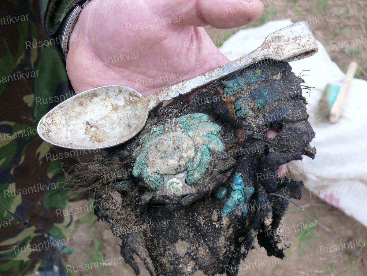 7. Краб командира ПВФ и ложка «Боря», найденные во время раскопок.