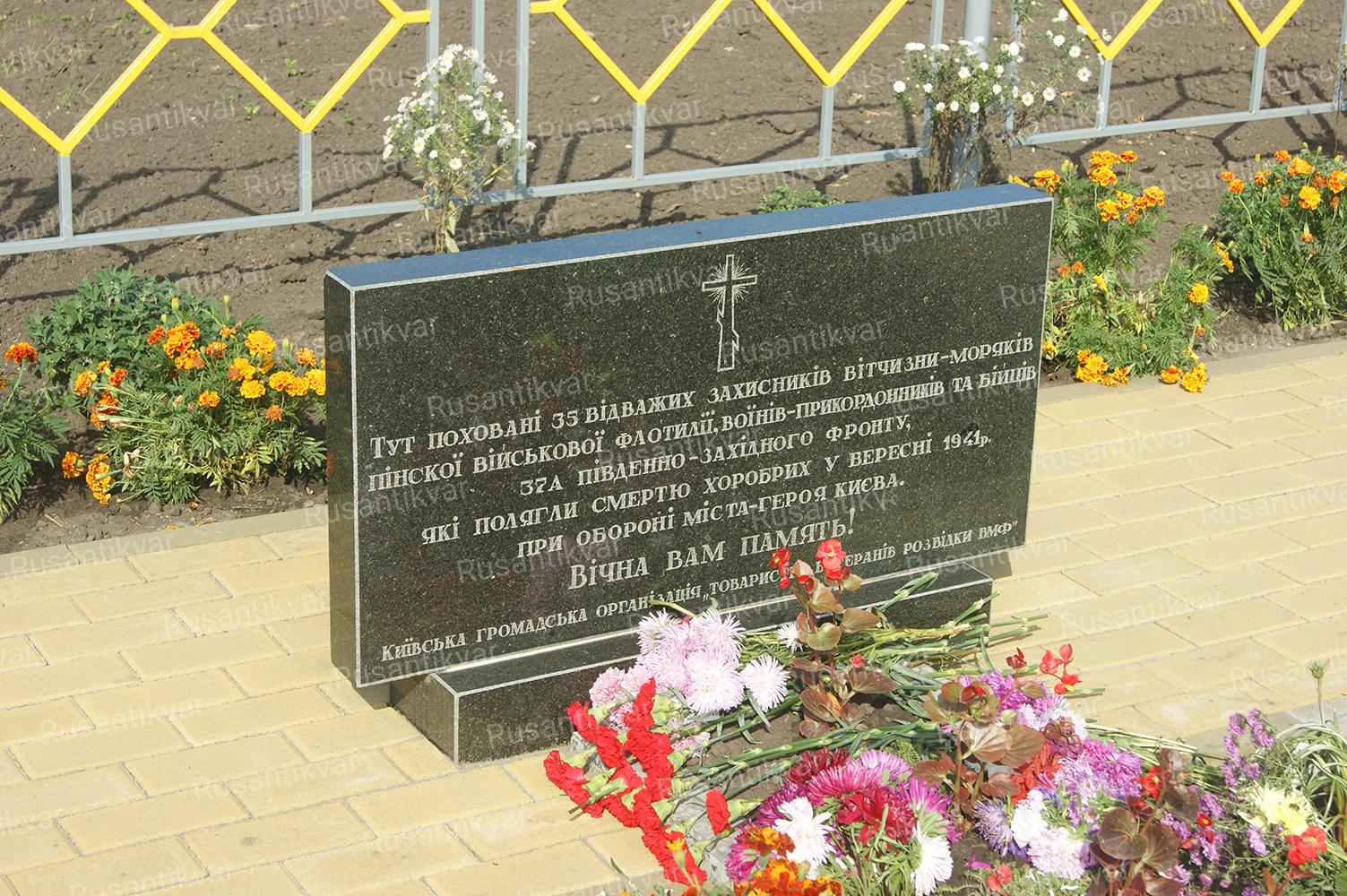 После войны исполком Иванковского сельсовета обустроил братскую могилу, в которую, по непроверенным данным, легло 1700 защитников Киева, в том числе, часть погибших моряков. Найденные поисковиками останки были похоронены сюда же со всеми воинскими почестями и по христианским обычаям в два этапа, 9 мая 2007-го и 9 мая 2009 года. Идентифицировать, к сожалению, удалось единицы. Первым стал пограничник Петр Потапович Постоялкин, сражавшийся вместе с моряками. У него был найден хорошо сохранившийся медальон, а в г. Зимогорье Славяносербского района Луганской области нашлись его родственники. Батальонного комиссара ПВФ Петра Григорьевича Паргамина установили по найденному Андреем Макаровым ордену Красной звезды № 3388. К нему родственники приехали на захоронение в Иванькове.