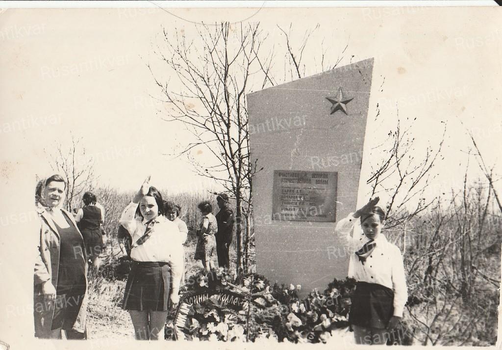 В этом же году, ближе к осени, я с десятым классом в полном составе пошёл в поход к месту падения самолёта с малым обелиском – уменьшенной копией того, что был установлен на кладбище. С собой мы взяли цемент, а на стоянке в распадке набрали песка, гравия и воды. Идти было тяжело, но никто не роптал. На месте гибели все взялись за установку обелиска на поляне, выжженной от падения самолёта…».