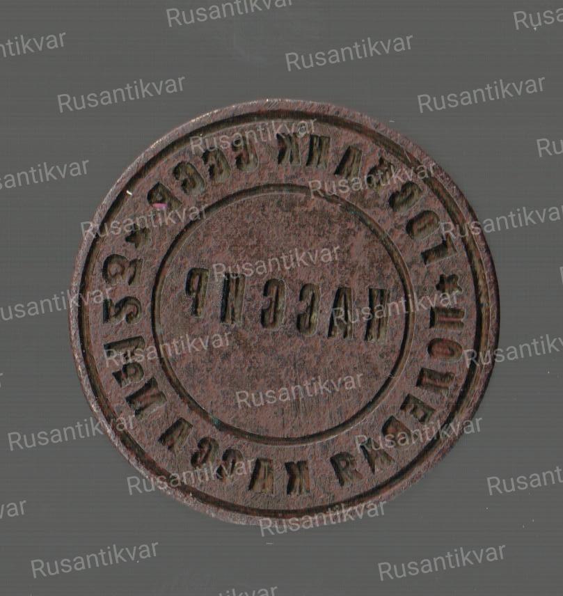 Латунная печать «Печать для опечатывания. Упр. Нар. Ком. Внутр. Дел по Белостокской области. Августовская городская пожарная охрана» (фото 6-1, 6-2) + самодельные жетоны 5-й и 10-й пожарных команд - найдены без останков погибших военнослужащих РККА (останки были найдены в 30 и 70 метрах от места обнаружения печати и жетонов соответственно) при проведении поисковых работ в Кокощицком лесу в августе 2015 г.