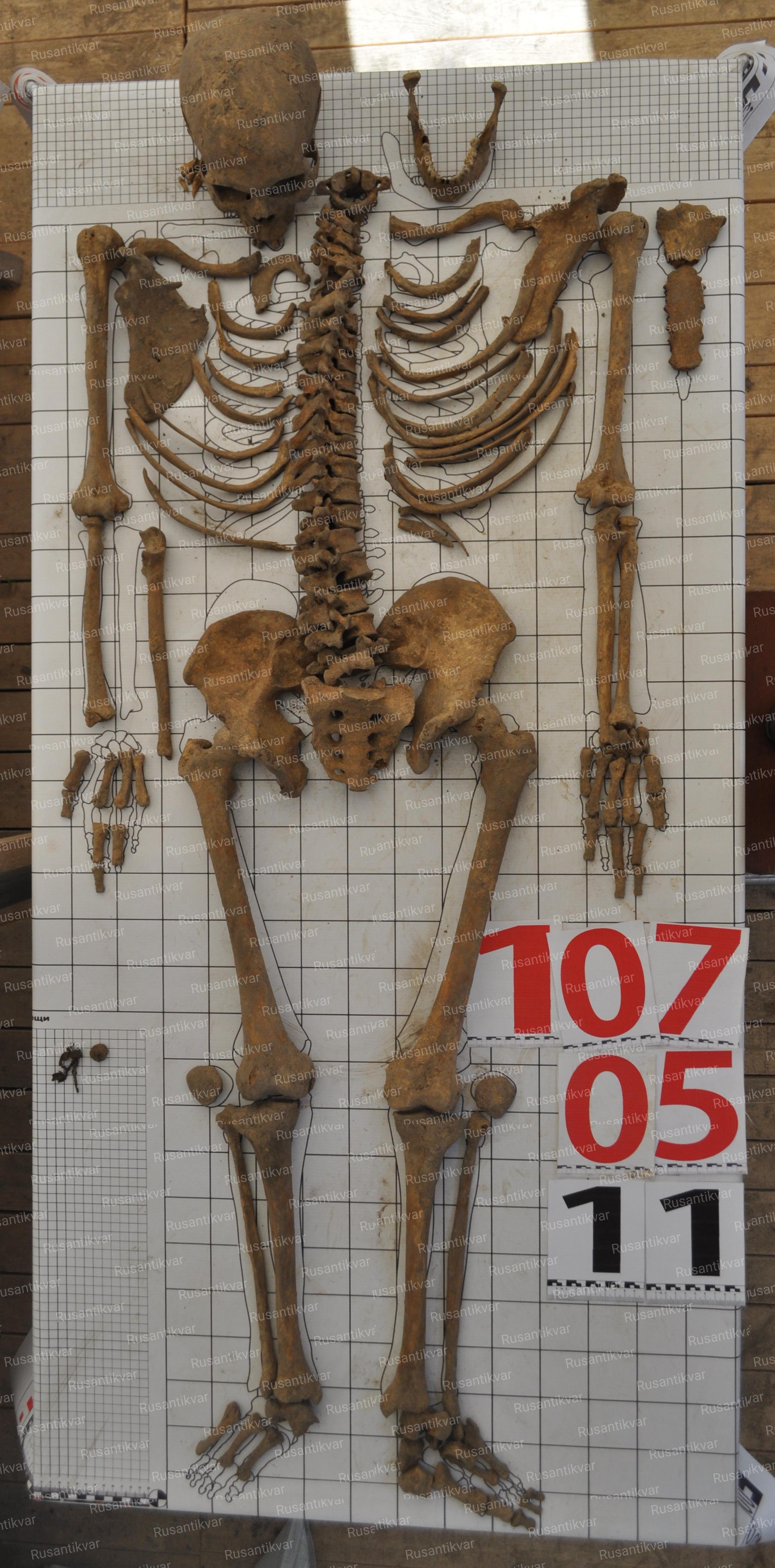 2 - Останки, разложенные на баннере в анатомическом порядке.