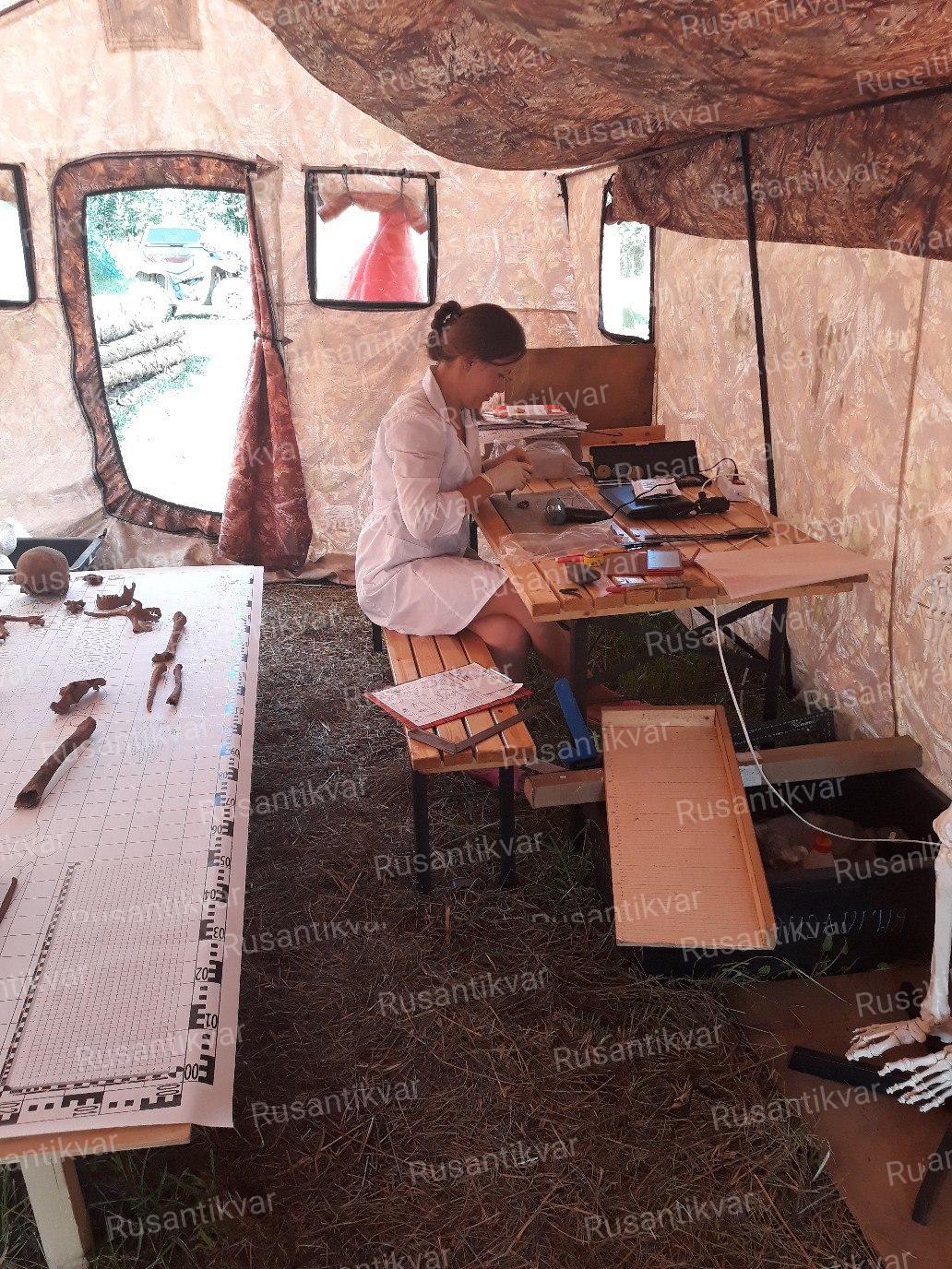 Обычно для работы антропологов организуется специальное место – антропологическая палатка или площадка. Но, если есть возможность, мы выезжаем на раскоп и работаем прямо на месте подъёма. Это позволяет сэкономить время и меньше тревожить останки средней или плохой сохранности. Кроме того, присутствие антрополога на раскопе бывает полезно, чтобы разобраться в расположении останков и очерёдности их поднятия, увидеть контекст их залегания: место, поза, что было рядом и т.д.