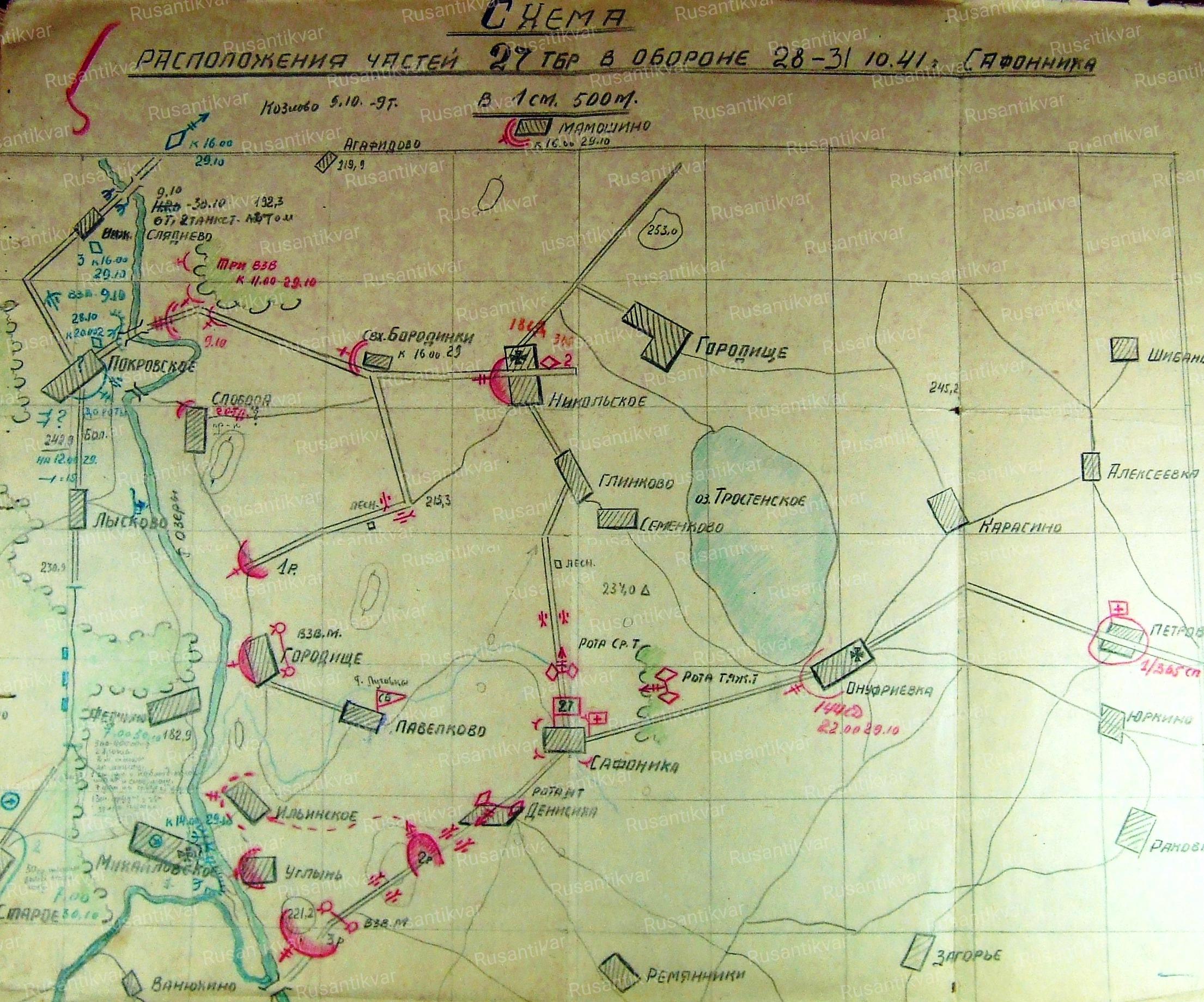 Разведка боем 26.10.1941 г. 28-й танковой бригады показала, что в Скирманово находится немецкий танковый батальон, причём в наличии средние и тяжёлые танки (это полностью соответствовало данным на утро 26.10, но к полудню в районе Скирманова был уже весь 7-й танковый полк – прим. автора), организована противотанковая оборона [1].