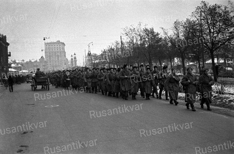 8. Бойцы 18-й дивизии народного ополчения на Ленинградском шоссе, не далеко от Белорусского вокзала.