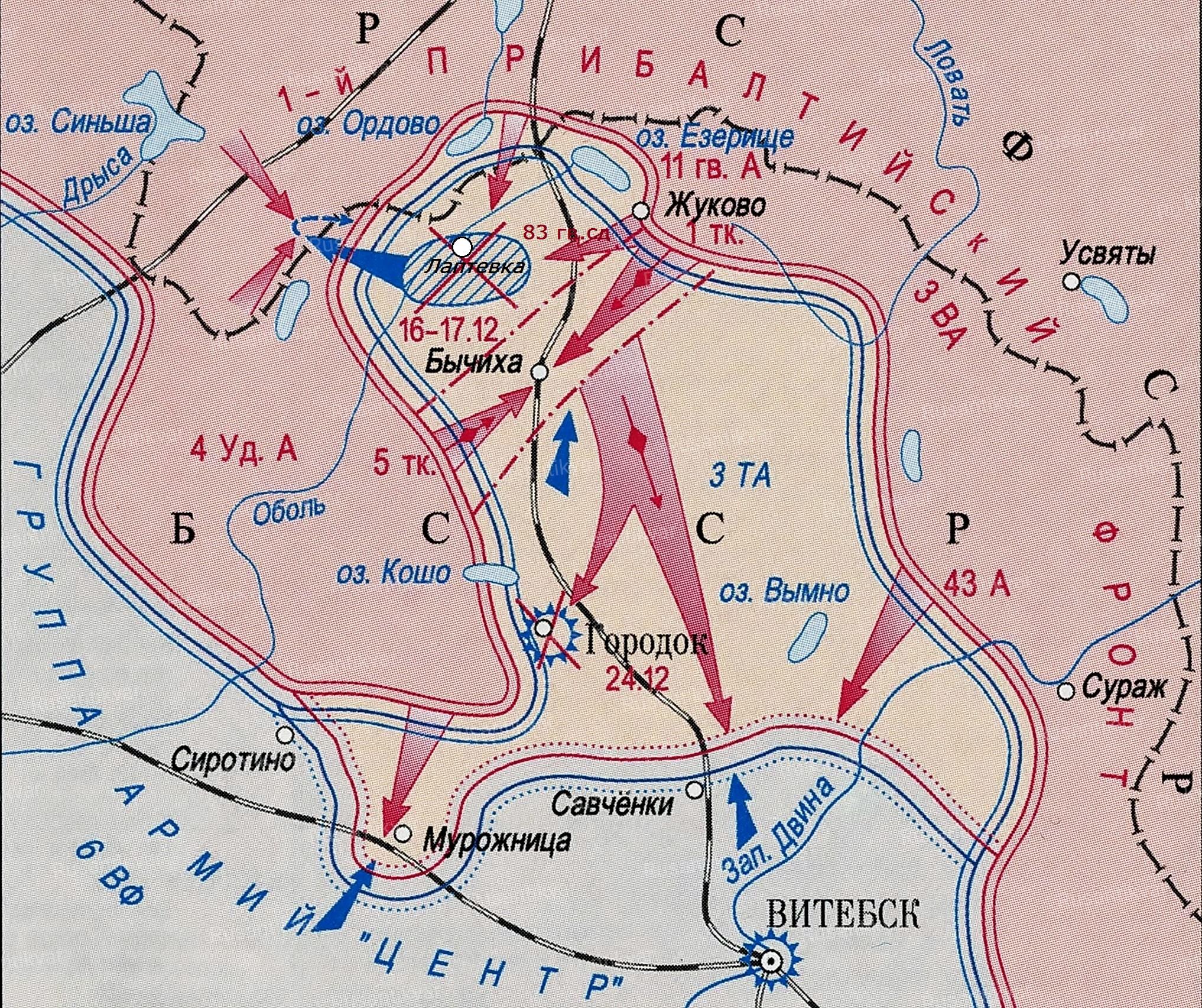в зоне действия 11-й гвардейской Армии. Белоруссия, 16-17 декабря