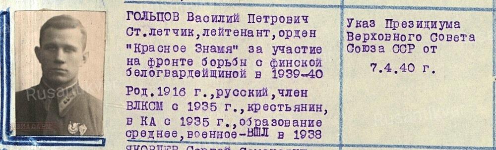 4, 5) Фотография лётчика Гольцова В.П. из формуляра на награждение орденом Красного Знамени за участие в советско-финской войне. Из фондов РГВА;