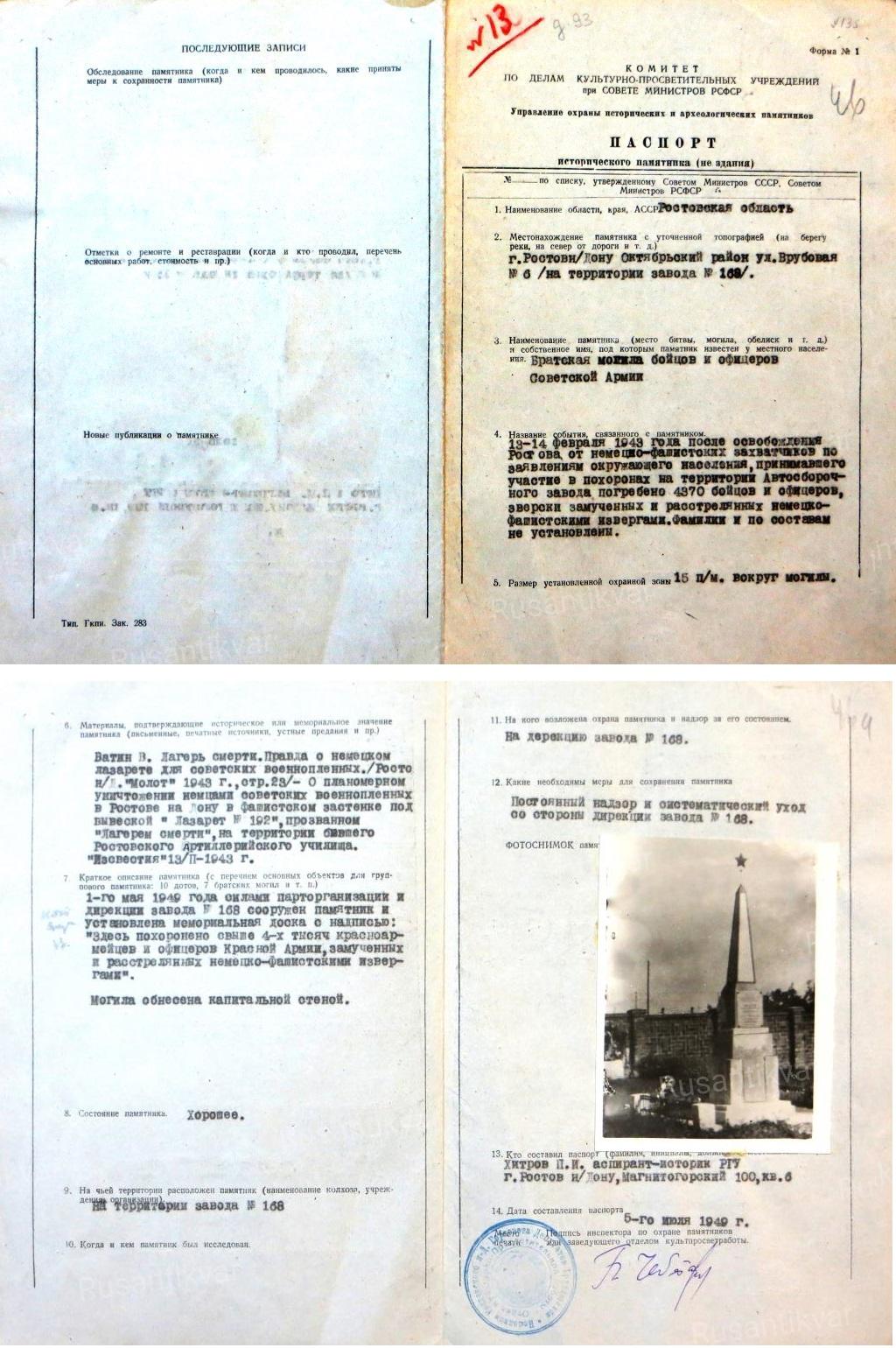 5. Паспорт памятника 1949 г.