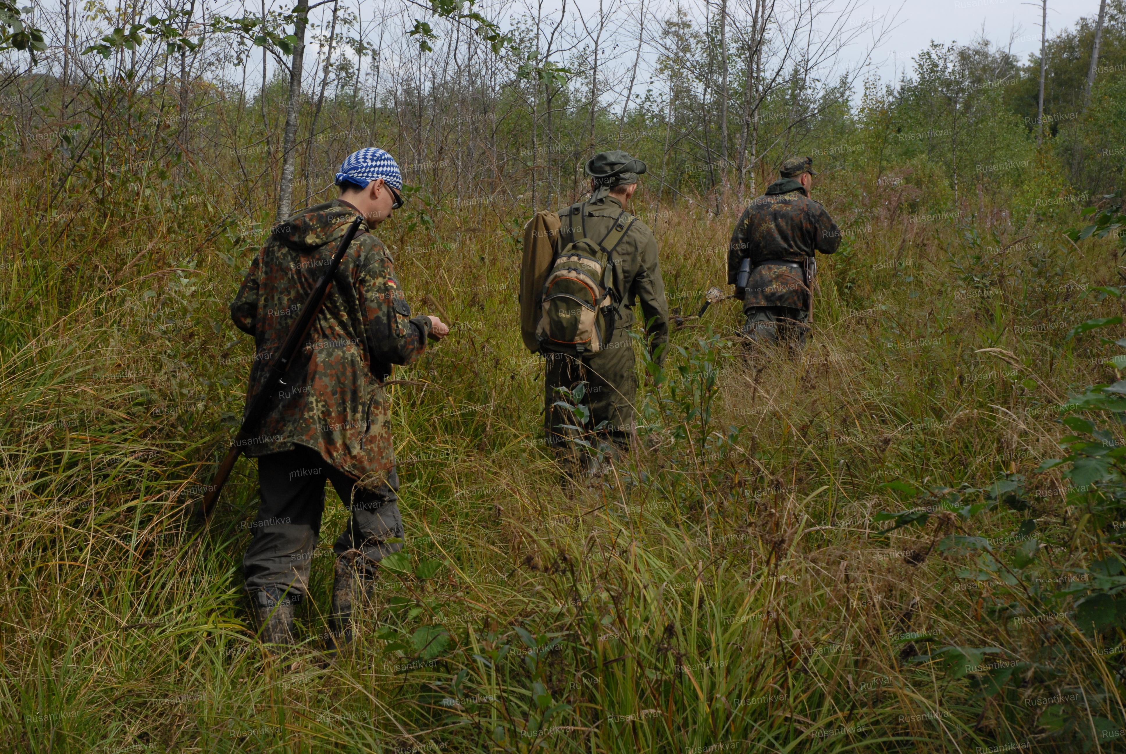 День уже давно клонился к закату (если в начале июля в тех местах светло круглые сутки, то в конце августа темнеет часов в одиннадцать). И краткий семейный совет постановил отложить дальнейшие поиски до утра, обосновавшись на сухой поляне, у края болота. Место, кстати, оказалось вполне себе обжитое. Лагерь мы разбивали здесь далеко не первыми. И судя по обилию разбросанного вокруг копаного железа и разорванных винтовочных патронов в кострище, интересы с этими людьми у нас были общие.