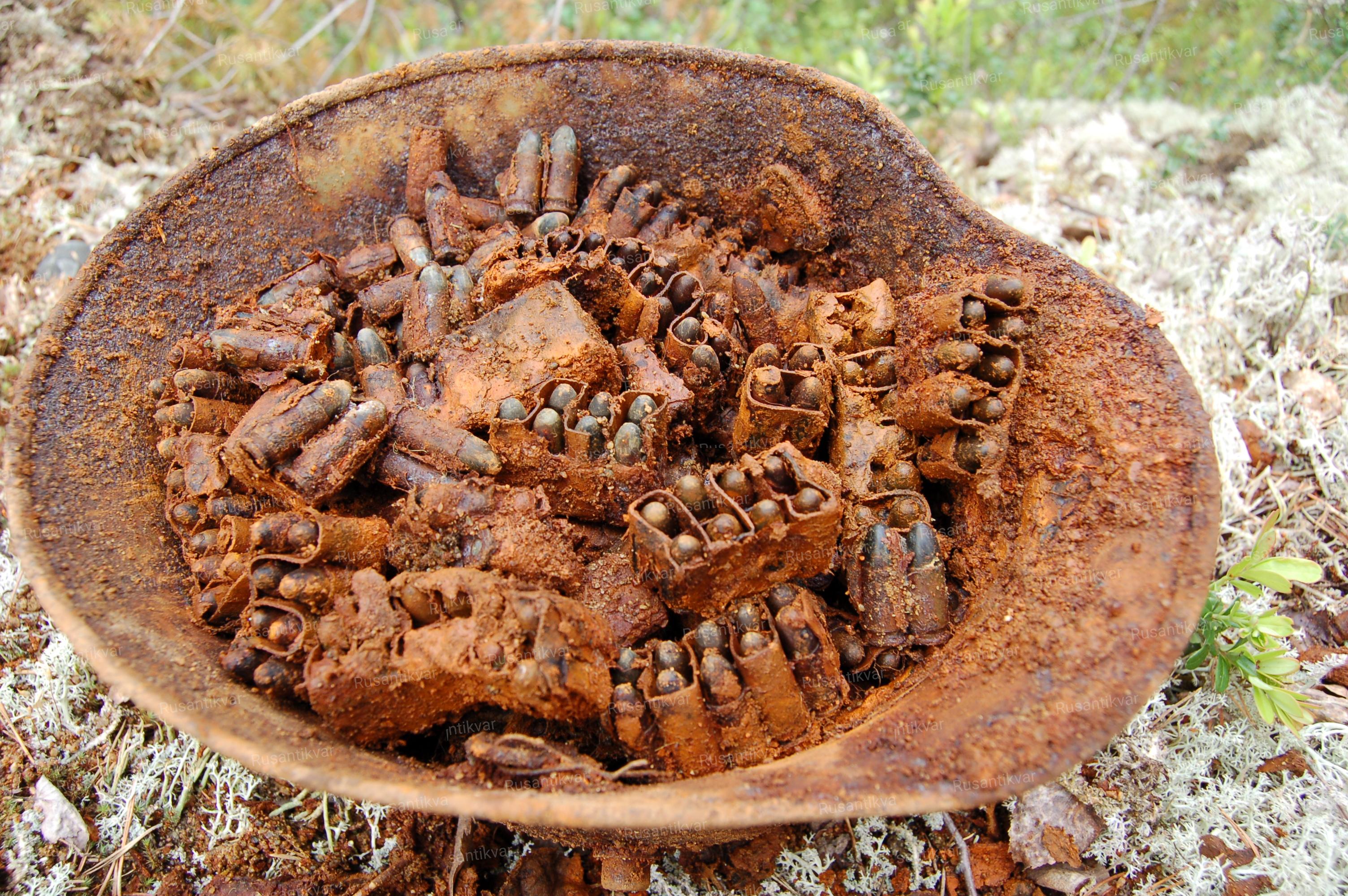 Приложением к хорошо сохранившемуся финскому шлему стала куча патронов.