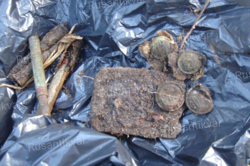 Первый остров, на который мы высадились, нас очень удивил. Немного пройдя по берегу, мы оказались на натоптанной тропинке, которая привела нас к очередной рыбацкой избе, перед которой возвышался штабель водочных бутылок. Вот так нетронутые труднодоступные места! Что за дела? Ладно изба, её срубили на месте, но вот буржуйка в которой килограммов 300 явно не тянула на роль притащенной по гати и далее на лодке. Метрах в 70 нашли траншею, солидную, монументальную, но абсолютно пустую. Вообще на весь остров нашли только две траншеи и три блиндажа. Первый отдался тремя раскуроченными патронами, а второй – парой килограммов патронов в картонных пачках и, следовательно, в достойном сохране. Третий блин стоял не обваленный, с накатом и двумя заваленными валунами входами. Входы вскрыть быстро не удалось, и товарищ начал торопить - тут войны не было, ни осколочка, ни настрела, поплыли дальше к богатствам несметным, хрен с этим блиндажом. Ну, хрен так хрен. Остальные острова были поменьше и абсолютно пустыми. Ещё несколько десантов вдоль берега и забегов по окрестностям прошли впустую, не считая остатков наших минных полей с одиноко торчащими «кукурузинами». На очередном мыске мы высадились на большой плоский камень, очень красивый и антуражный, окрестности заросли брусникой, в которую мы радостно и забурились. Вообще брусника ещё не вызрела, ягода осенняя, но в солнечных местах очень даже вкусная. Среди этого великолепия нашли кострище, которое говорило о том, что мы на верном месте - толстый слой мосинских, ттшных и маузеровских разорванных патронов и лопнувшая, на большие куски, «эфка». С боевым кличем мы ломанулись вглубь леса, где сразу же наткнулись на густо опутанные колючей проволокой траншеи. Но увы, и ах, кроме десятка гнилых патронов и безумного количества консервных банок - ничего. При том, что позиции явно немецкие, брустверы смотрят на восток, боя не было. Удручённые поплыли дальше. Ещё пара десантов без результата и пора уже искать ночёвку. Сеансы связи со вторым экипажем оказались безрезультатны - не добивают простенькие лпдшки на таких просторах. Народ кое-как сквозь шумы пробился часов в 11, когда мы уже расположились и поглощали жареные грибы у уютного очага среди валунов и берёзовой рощи. Место это оказалось урочищем Сенозеро и тоже внесло сомнения о труднодоступности места – на поле стояли конструкции для заготовки и сушки сена, которыми пользовались самое позднее пару лет назад. Раз сено - значит и дорога, но в траве по плечи мы её не нашли. Очень душевно посидели под тушенку, макарошки, грибы на сале и всякие байки за жизнь. Утром выяснилось, что второй детектор, который я брал как запасной, тоже помер и диагностике в лесных условиях не поддаётся. Так я стал «экскаватором» и оставшееся время копал за другими или пользовал приборы отдыхающих в лагере друзей. Мягко говоря, неприятно, так как у всех свои методы и понятия о правильных сигналах, а к чужому прибору надо долго привыкать, чтобы понять, что к чему. К слову, своим прибором я нормально овладел года через три пользования.