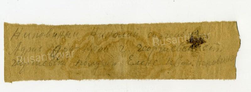 А вечером перезвонила сотрудник Национального Музея Истории войны Наталья Гамарник и спросила: «А угадай, откуда третий солдат, что нашли под дикой грушей?» Я без колебания ответил: «Из Арзгира…» Вкладыш был сильно поврежден. Читалось только - откуда родом и откуда призывался (с. Арзгир), звать солдата было Захаром, фамилия начиналась на «Ум» и в середине буква «е». Жену звали Евдокия. В отчестве солдата читается «ирид». За дело взялись поисковики из Интернета.