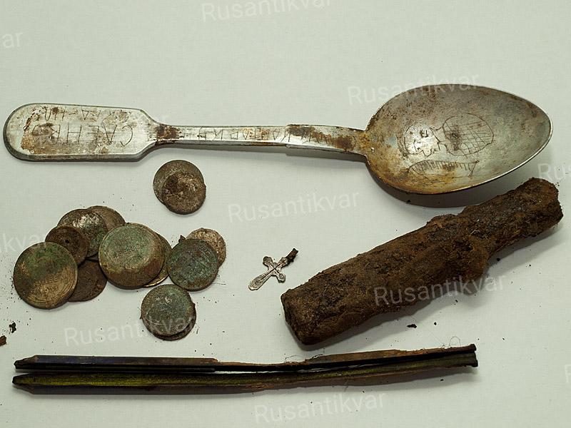 Копаем слабый сигнал. Солдат. Осколочные ранения в голову и правое бедро. В кармане копейки - мелочь и нательный крестик. Видать боялся на шее носить. Но самая невероятная находка была впереди. В противогазной сумке лежала ложка. И какая! На ней солдат чудом сумел вместить всю информацию о себе, указав не только свои личные данные, полный домашний адрес и место работы до начала войны, но даже смог выцарапать что-то вроде автопортрета! Такой творческой ложки мы не видели никогда в жизни... Через полчаса, благодаря ОБД «Мемориал» мы уже знали об этом солдате многое. Вот что на ней было написано: «СТРОЙКАНТОРА КУЧИР САЕНКО С.А.А. КРА-НОДАР», «ПРИБЫЛ В РККА. А.А.С. 7/6.41г.», «ОРЖ. КРАЙ АРЗГИР. РА-НА,С.АРЗГИР,УЛ.АРЗГИРСКАЯ,№10». Причем для нанесения надписей были использованы все доступные поверхности, включая черпачную часть. А на ее внутренней стороне был нацарапан рисунок – профиль человека, сидящего верхом на лошади.