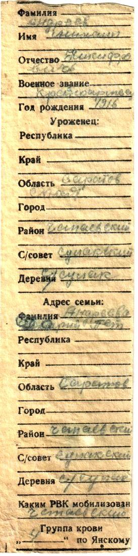 Интересная деталь: первоначально в списке значилось три человека: «Рядовой Гришаев Федор Иванович из города Горький, Кобанов Трофим Евдокимович из села Кочкурова Починковского района, Рыбин Александр Тимофеевич из Орловской области село Городецкое». Но чуть позже эксперты провели дополнительное исследование и выяснили: Трофим Кобанов – это отчим Александра Рыбина. Очевидно, боец написал имя приемного отца в надежде, что если найдут его останки – будет проще сообщить о смерти родственникам. Такие, вот, загадки истории приходится разгадывать экспертам Управления по увековечению памяти защитников Отечества и жертв войн Вооруженных Сил…