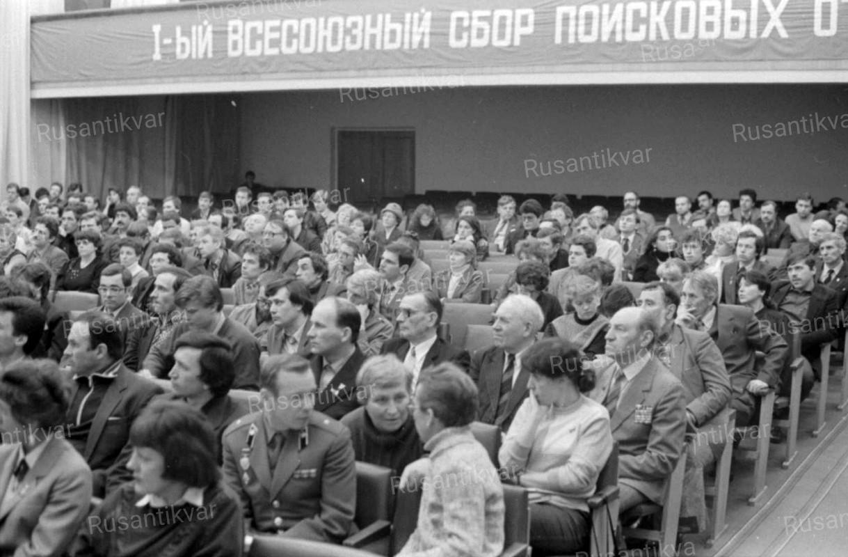 - В марте 1988 года Центральный Комитет ВЛКСМ собрал в Калуге знаменательный Первый Всесоюзный сбор руководителей поисковых отрядов, на котором впервые на государственном уровне прозвучал вопрос о незахороненных с войны останках сотен тысяч защитников Родины, поставлена задача их поиска и захоронения с подобающими воинскими почестями, установления имен и судеб, поиска родственников погибших, увековечения памяти. Кроме 106 руководителей поисковых отрядов и групп на Калужском сборе присутствовали представители Совета Министров СССР, ЦК КПСС, Министерств Обороны, Иностранных дел, Просвещения, Здравоохранения, Внутренних дел, ВЦСПС, всех ведущих газет страны, Центрального телевидения, многих музеев и архивов. Наши прославленные ветераны. На сборе был создан Всесоюзный координационный совет поисковых отрядов (ВКС) во главе с ветераном войны Юлием Михайловичем Иконниковым, который провел беспрецедентную работу по становлению поискового движения в СССР и на постсоветском пространстве. Большая практическая работа по созданию Всесоюзной поисковой организации выпала на долю заместителя заведующего оборонно-спортивным отделом ЦК ВЛКСМ Виктора Владимировича Кривопускова.