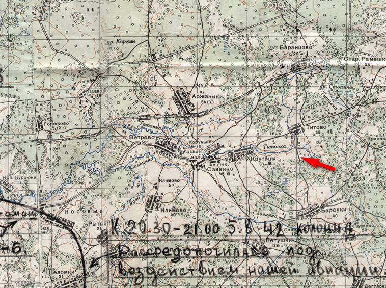 1. Карта боевых действий с указанием места падения ЯК-1.