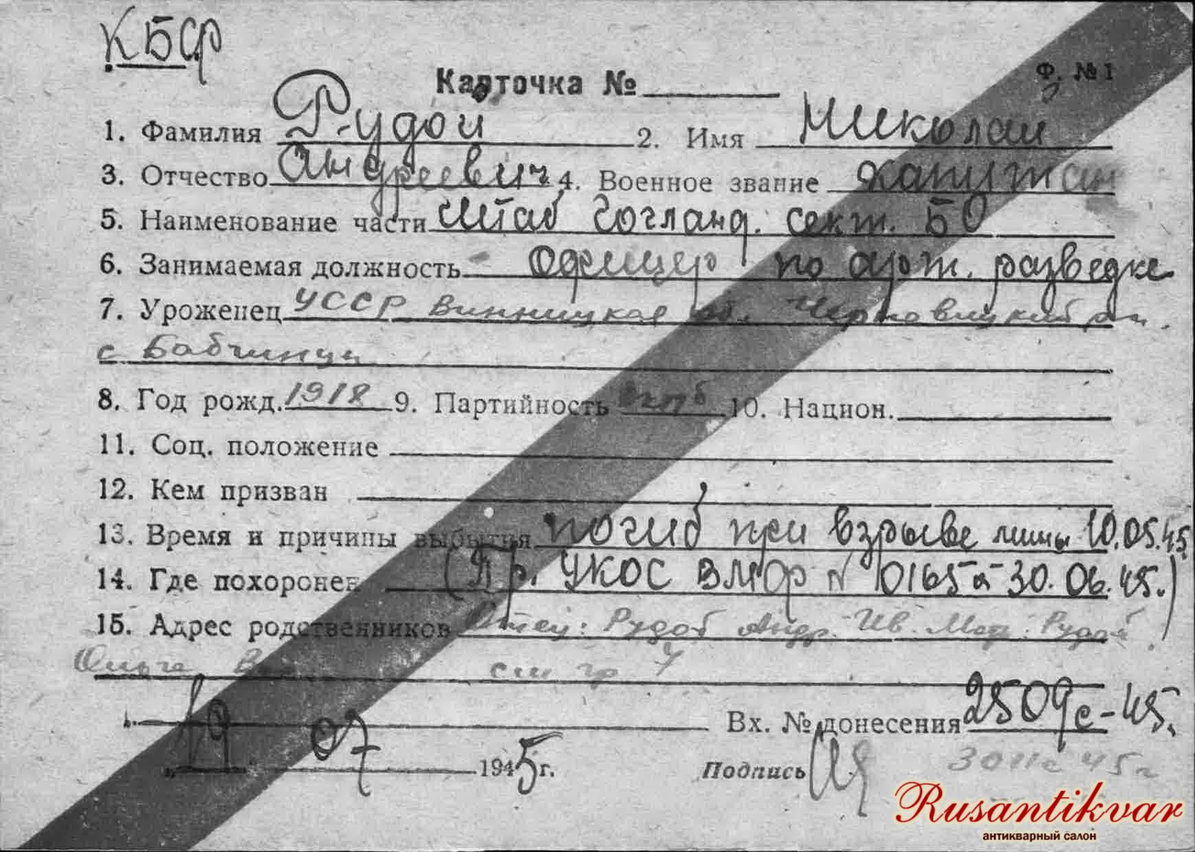 На сайте «Подвиг народа» выявлена информация о дважды орденоносце капитане Рудом Николае Андреевиче, 1915 г.р., начальнике штаба 535-го отдельного артиллерийского дивизиона, уроженце Черновицкого района Винницкой области.