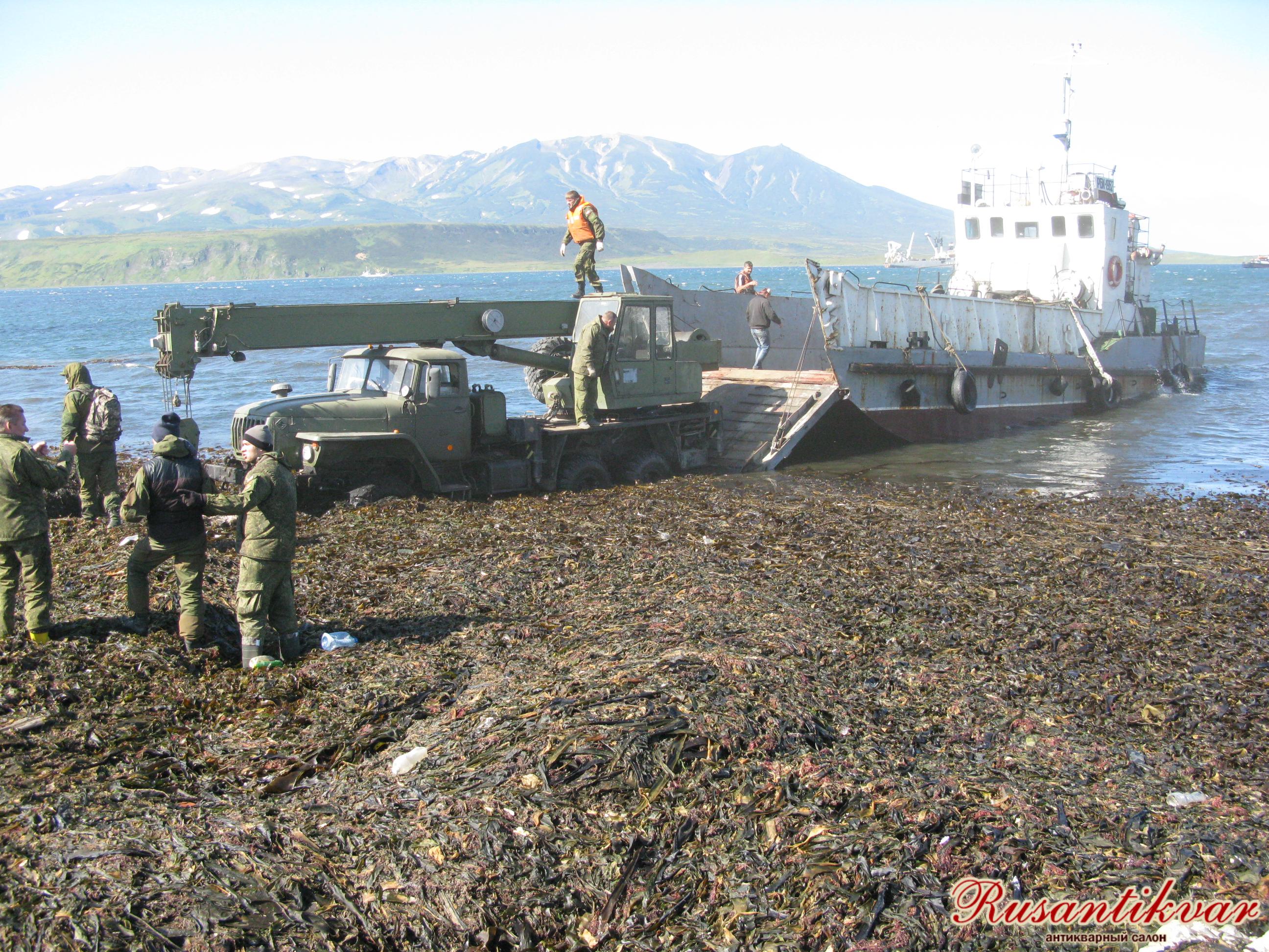 В порту – очередной сюрприз от МО и командования Тихоокеанским флотом. Нас ждёт не просто корабль, а целый небоскрёб на воде – килектор, (новое слово в моем лексиконе). Проще говоря – гигантский плавучий кран. На его борту уже находится кое-что из снаряжения экспедиции и техники. Да, такого размаха мы раньше не видали, в таких грандиозных проектах не участвовали. На борту – 5 тонн продовольствия, 2 тонны воды, полевые кухни, бензогенераторы на колесному ходу, «ГТТ-шки», подъемный кран на базе «Урала», «кунги» с имуществом и многое, многое другое. И вот, «муравьи», обвешанные рюкзаками и сумками, потянулись по крутому трапу на борт. Погода – супер, настроение – класс, команда единомышленников – «свои в доску». О чём еще мечтать перед началом путешествия на край земли?
