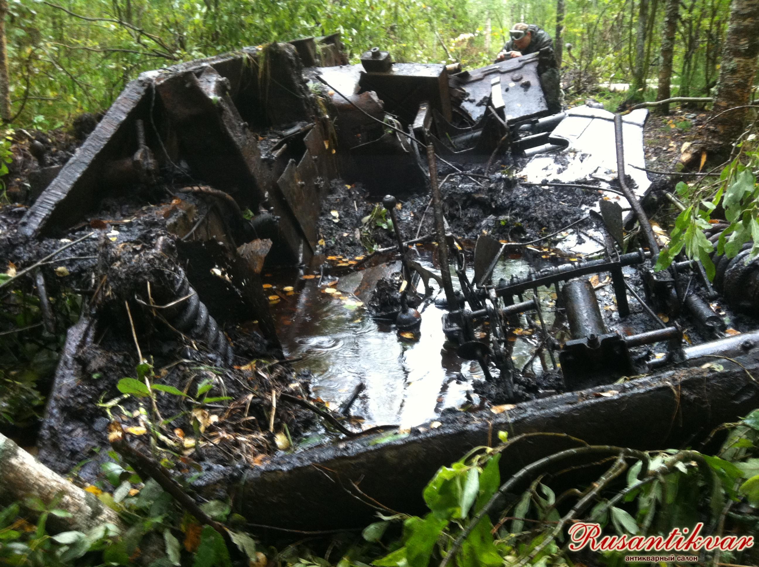 4. Кто-то тащил танк Т-34, вернее то, что от него осталось, из глубины болота.