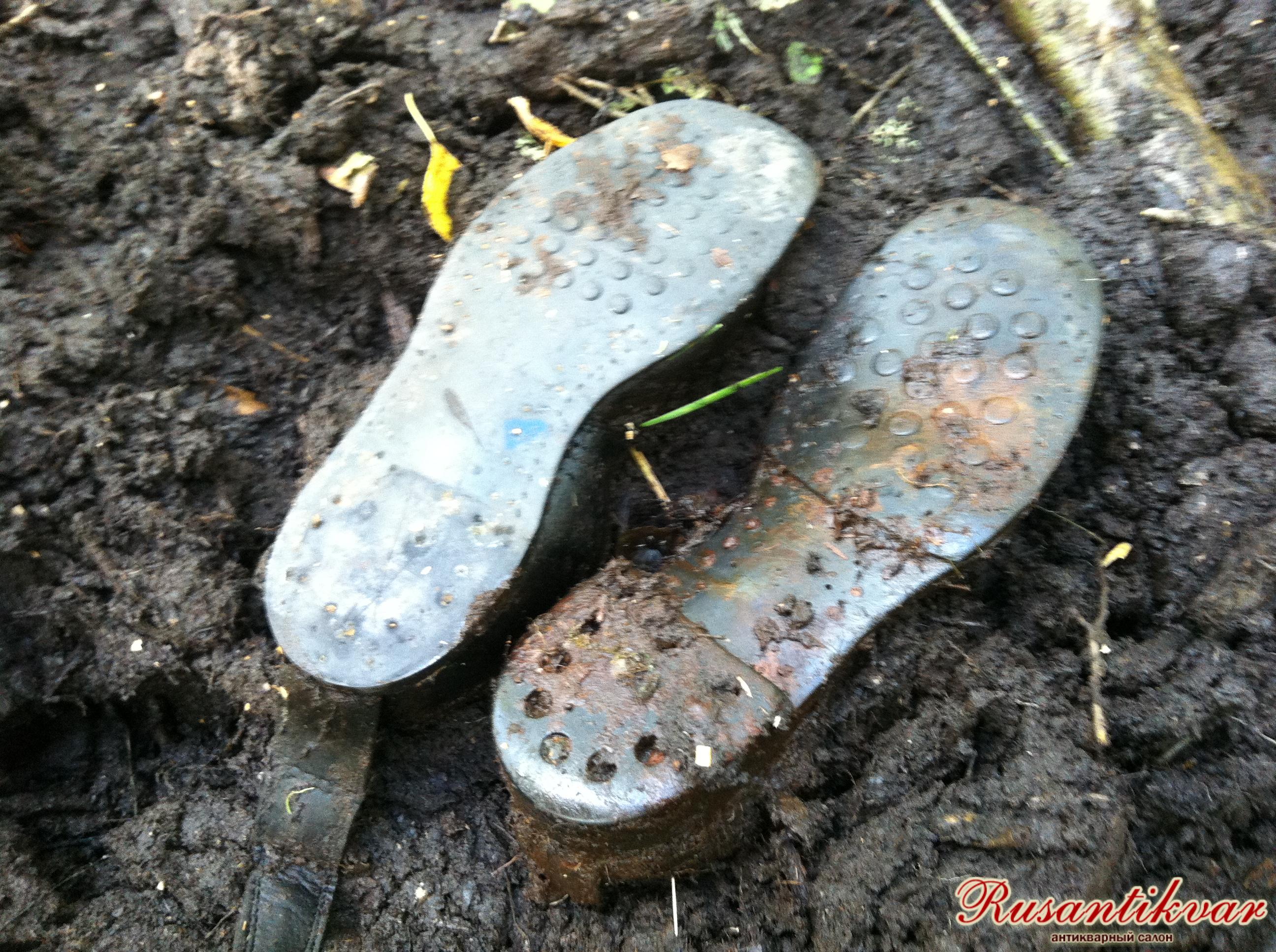 Перчатки то и дело рвались о корни, в итоге работать пришлось голыми руками. Вырубив часть корней, мы стали аккуратно расчищать болотную жижу, находившуюся под ними. Сначала на поверхности появились ноги бойца, что удивительно, в разных ботинках. Затем монеты с пуговицами. Вскоре к нам присоединился ещё один наш товарищ. Через три часа упорных работ, из глубины болотной жижи появились сначала очки, а затем и находка, которая привела нас в неописуемый восторг: подписной перочинный нож! На одной стороне явно читалось «Л-т Симонов», на обороте инициалы «Ф.Л.» Подписные предметы (котелки, чашки, ложки, ножи) являются второй (после медальона) самой желанной находкой поисковика - это дает зацепку и надежду, что личность бойца удастся установить. Расширяя место раскопа, мы вдруг натыкаемся на еще одну пару берцовых костей. Это не редкость, когда останки солдат лежат друг на друге - в этом болоте шли настолько ожесточённые бои, что наступать нашим солдатам приходилось прямо по телам своих боевых товарищей. Некоторое сомнение в наших сердцах зародили кусочки кожаных ремней, нехарактерных для амуниции солдата РККА... На следующий день мы вернулись к раскопу уже вчетвером. Останки уходили прямиком под стволы обоих деревьев, и, чтобы докопаться до истины, нам пришлось буквально выкорчевать их из земли.
