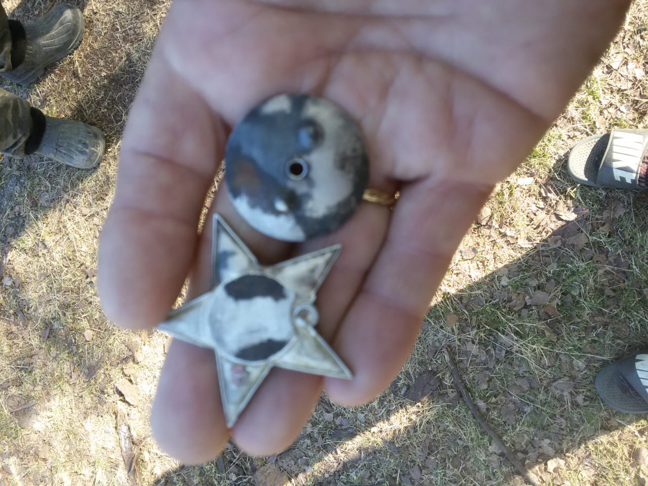 - Металлодетектор среагировал на крупный объект, стали копать, - рассказывают в отряде. – Сначала наткнулись на берцовую кость, а потом… Останки бойца практически лежали на катке от Т-34. С ними нашли ложку, крышку от котелка, перочинный нож и кружку, провалившуюся в отверстие катка. Но самое главное – при погибшем был орден Красной Звезды и клочок спрессованной бумаги с печатным текстом.