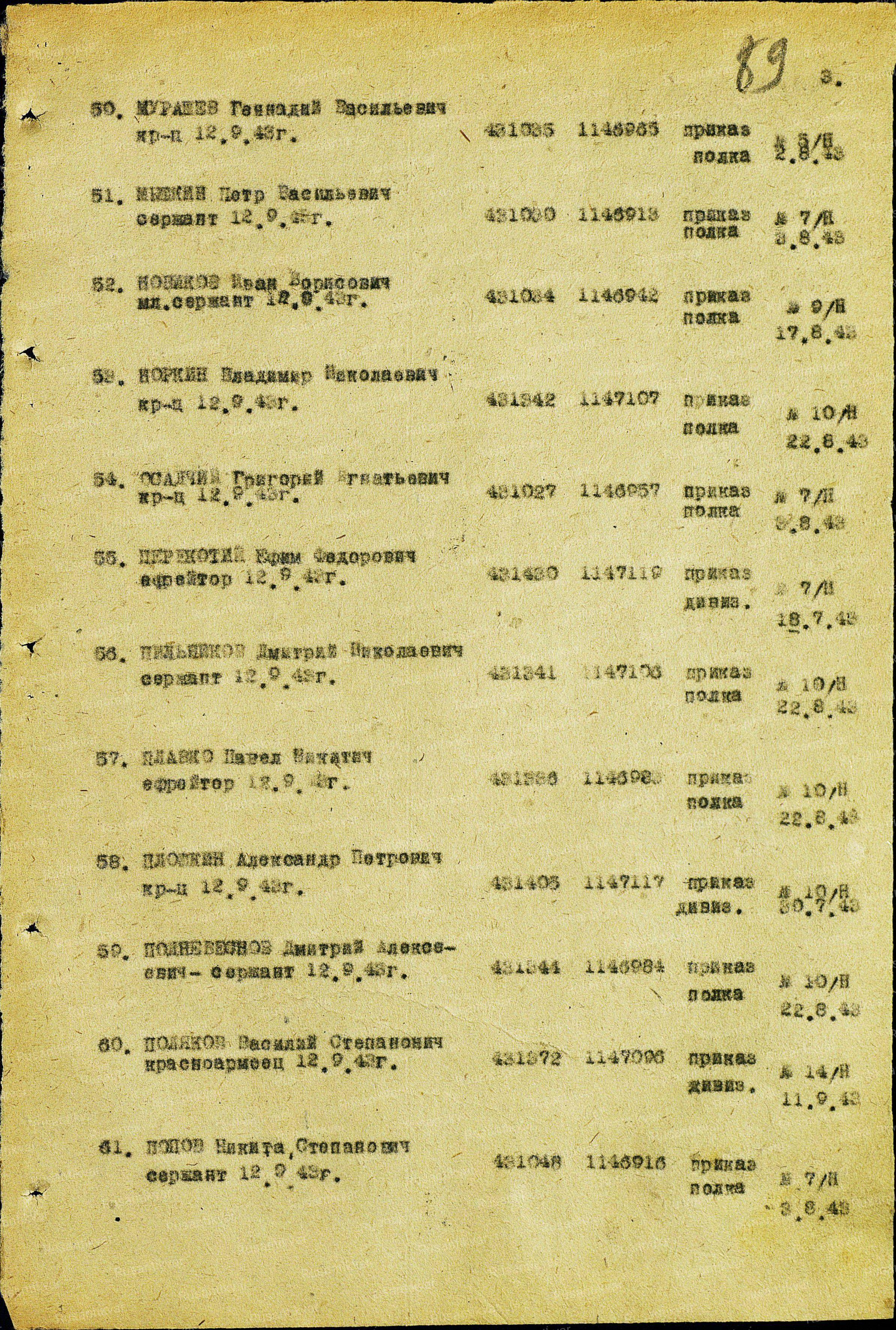 В октябре этого года членами поискового отряда «Рейд»,недолеко от города Гагарин Смоленской области была обнаружена медаль «За отвагу» №431035.Из архивных документов выяснилось,что этой медалью в сентябре 1943 г.был награжден Мурашев Геннадий Васильевич 1924 года рождения,проживавший до войны в Ивановской обл.Скорее всего медаль не могла быть утеряна в ходе боевых действий.Сейчас отрядом «Рейд» осуществляется поиск родственников героя с целью передачи награды для хранения в семью солдата.[