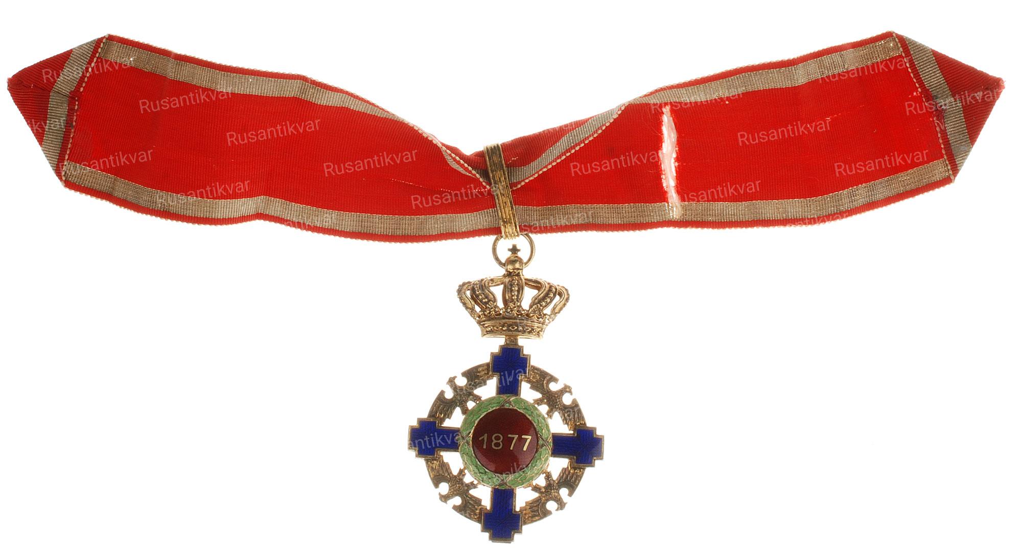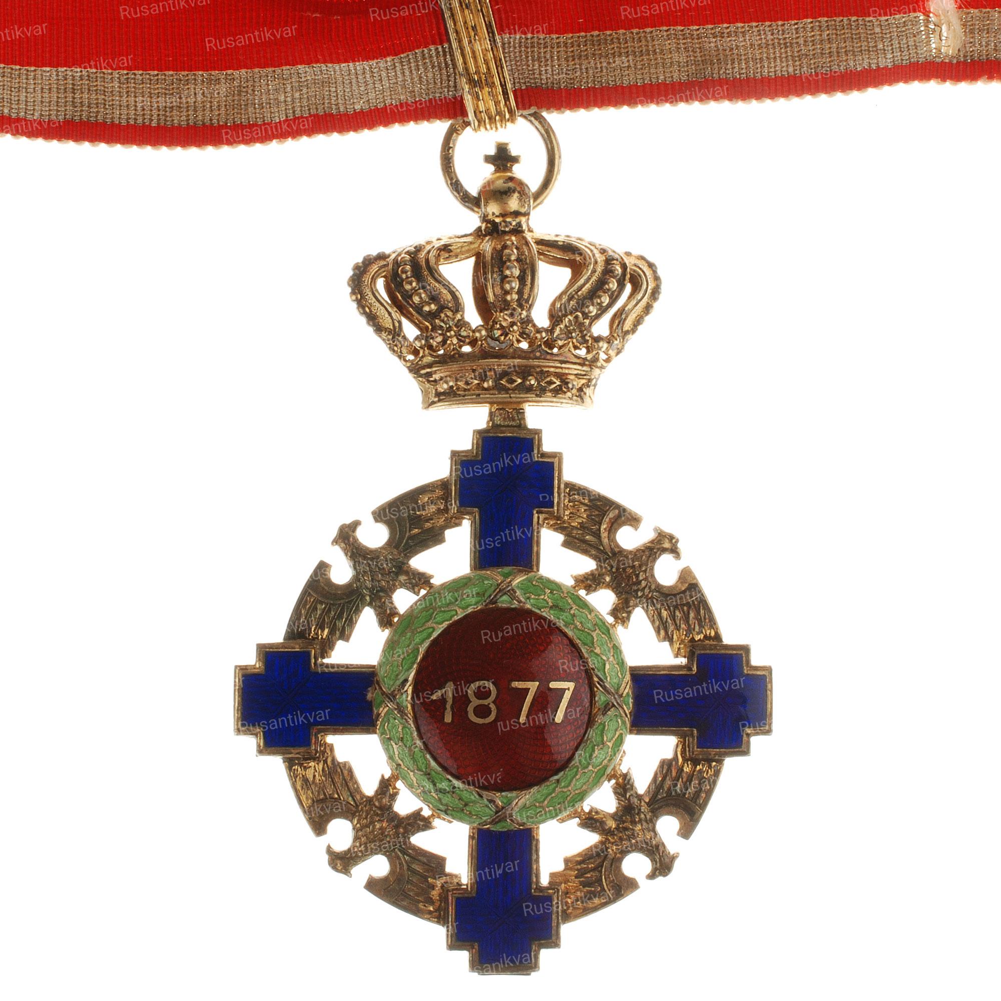 Знак Кавалера Большого креста Ордена Короны 1 степени. Учрежден 14 марта 1881 года королем Румынии Каролем I (1866-1881 гг.). Производственный выпуск 1932-1944 гг. (упразднен в 1947 году).