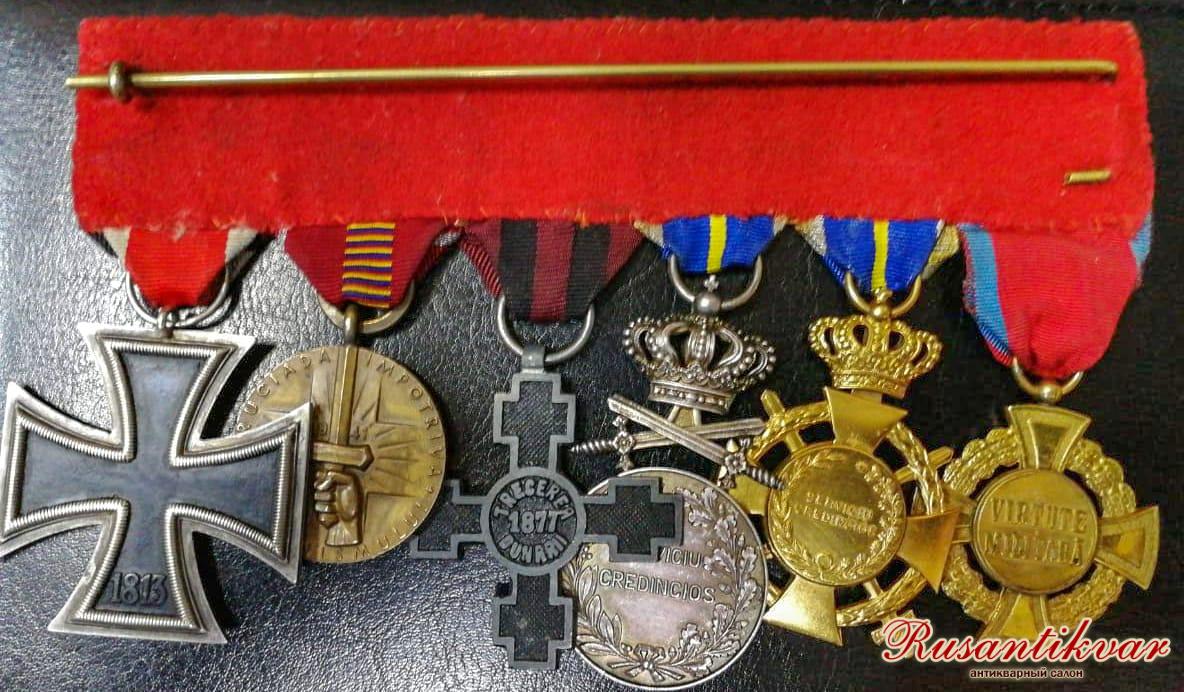 В 1939 году король Кароль II издал указ, по которому кресты "В Память перехода через Дунай" разрешалось носить старшим по мужской линии потомкам награжденных. На данной колодке как раз этот крест (немагнитный), плюс румынские награды и ЖК 3 Рейх....