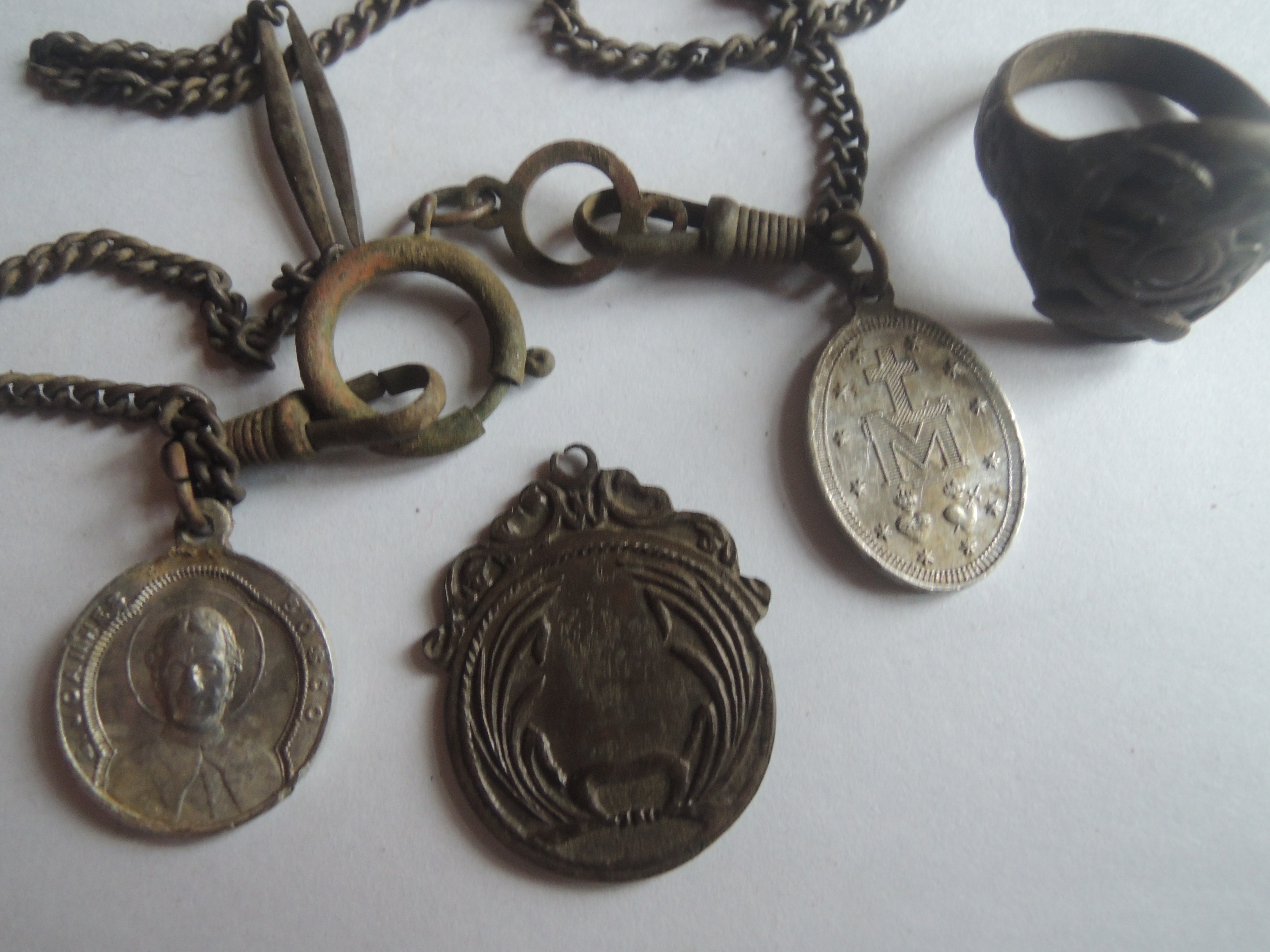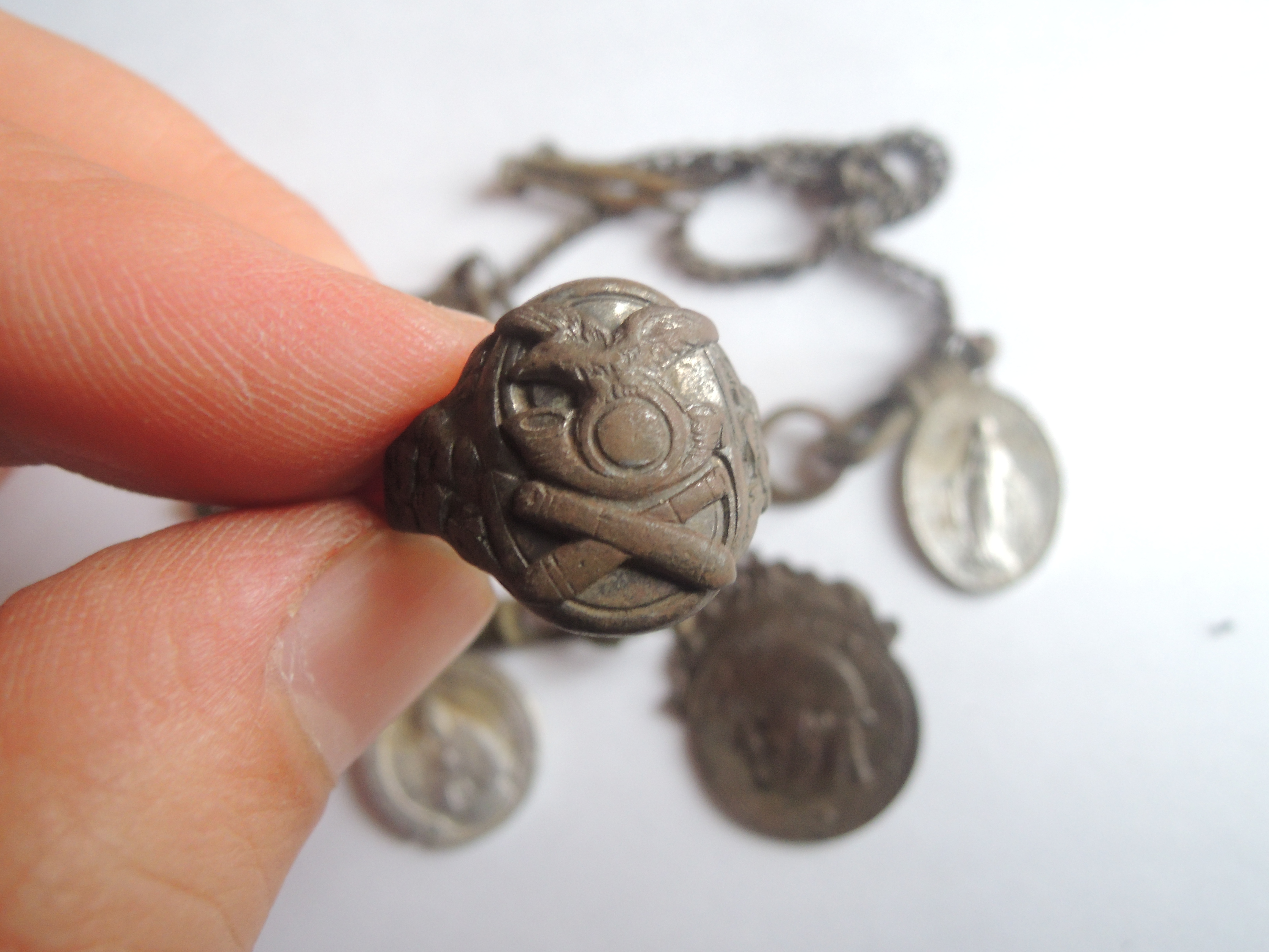 Цепочка с иконкой и жетоном с Дуче, принадлежала артиллеристу альпийцу, у него было кольцо.