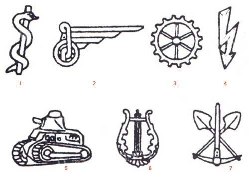 4 - войска связи (ранее была эмблема в виде двух скрещенных молний);
