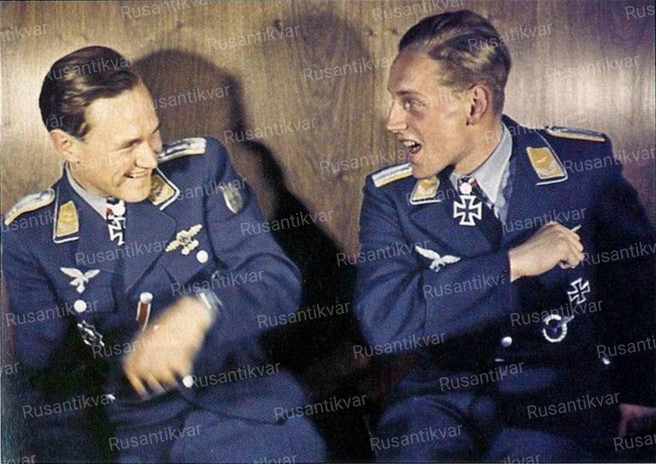 Обер-лейтенант Вальтер Крупински и лейтенант Эрих Хартманн в Бергхоф после церемонии награждения дубовыми листьями к Рыцарскому кресту.