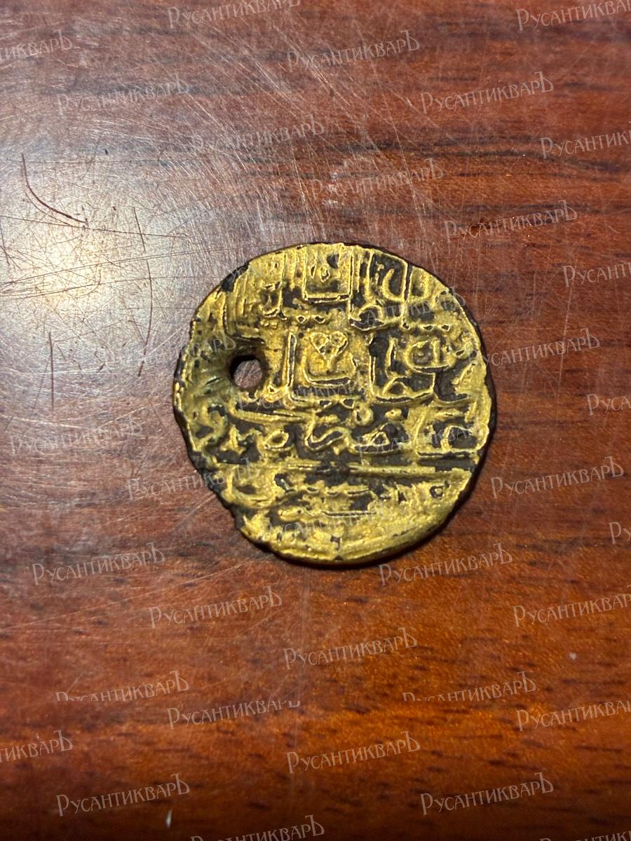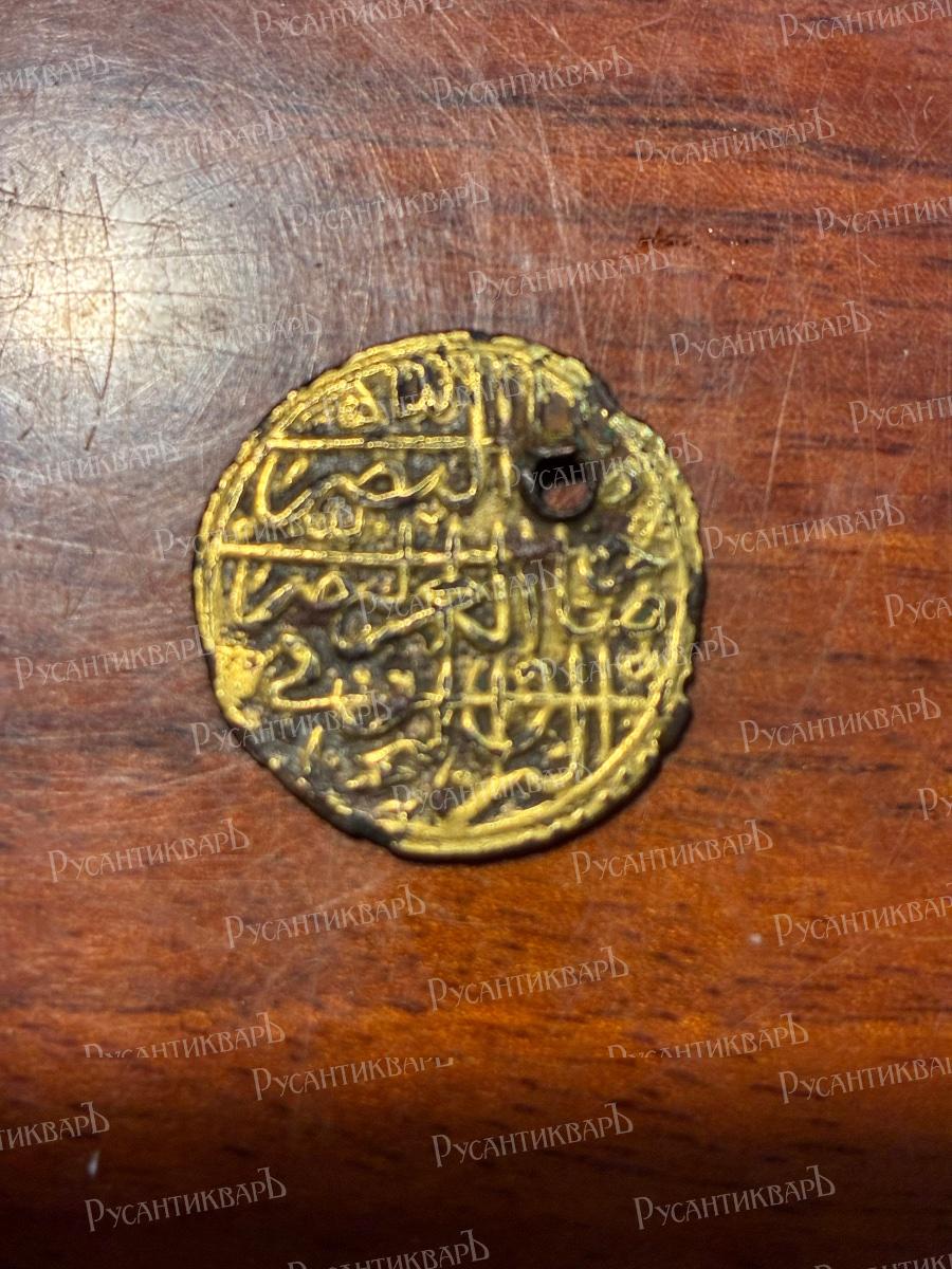 Фальшивый динар Османской Империи.Султан Сулиман Великолепный Бен Селим.Город Дамаск,926 г.х.Вес 2.4 гр.Бронза,золочение.