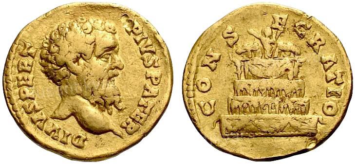 консекрационная монета Септимия Севера в честь Пертинакса