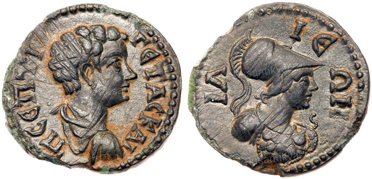 РЕВЕРС: ΙΛΙΕΩΝ — бюст Афины в шлеме и в эгиде вправо.